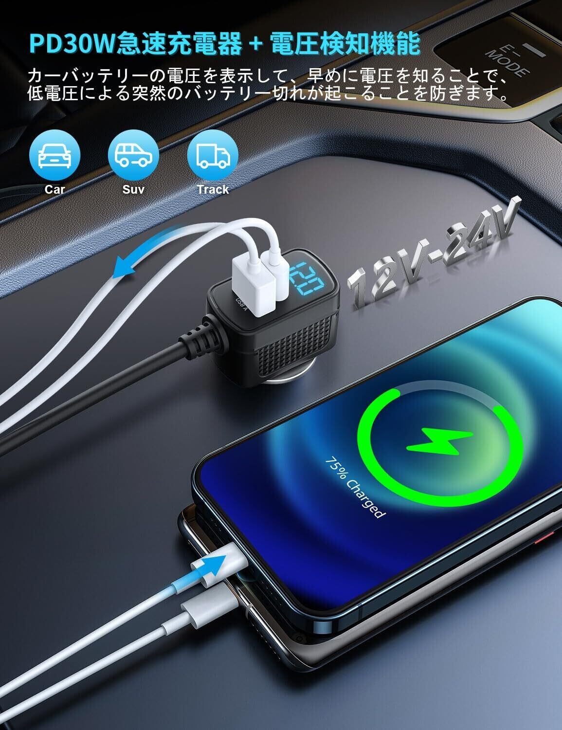 使いやすいオン/オフスイッチ: 各USBポートには独立したオン/オフスイッチがあり、デバイスを他に影響を与えずに自在に制御できます。さらに、LED電圧表示モニターが車のバッテリー電圧をリアルタイムでチェックします。