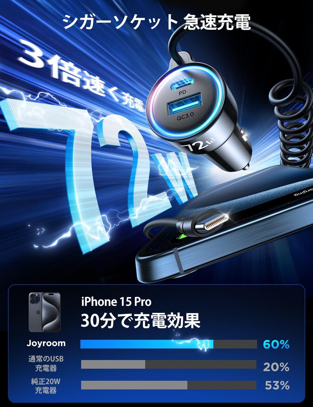 シガーソケット 急速充電 72W QC+PD 3ポート USBカーチャージャー 車載充電器12V/24V対応 iPhone/iPad/MacBook/Android 各種対応