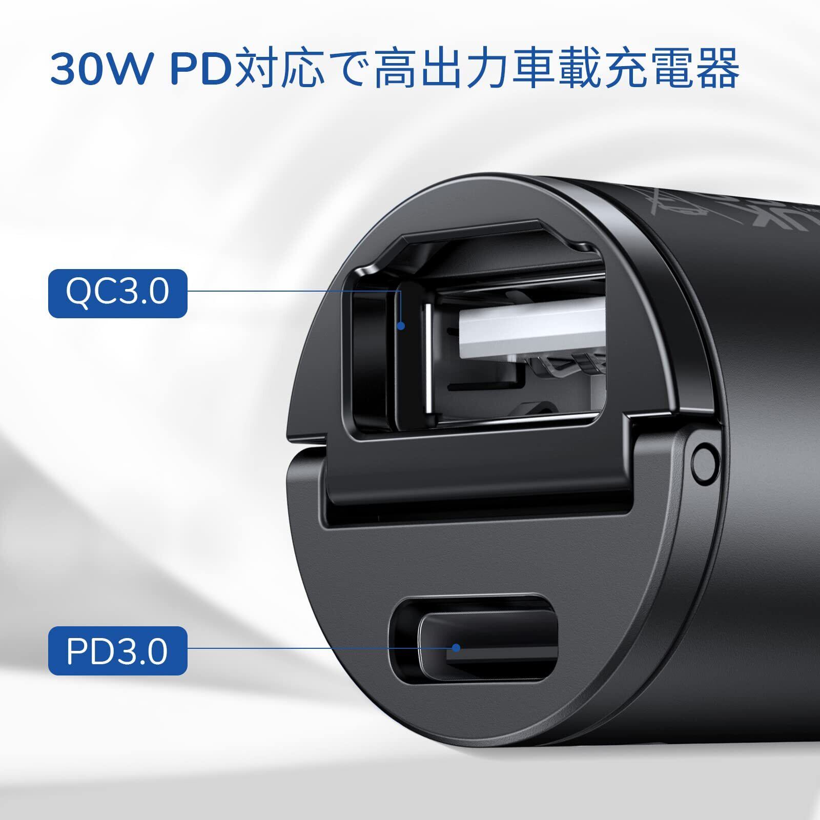 【小型設計で高級感あるデザイン】 省スペースな超コンパクト設計なので車内でも邪魔にならずに充電することが可能です。本体の素材にはキズがつきにくく軽くて丈夫なアルミ合金が採用され、重さはわずか17gほどの超軽量。高級感を感じさせるデザインと質感で、メタリックブラックのカラーリングが車内のインテリアにもぴったりとマッチします。(2022年12月までに世界最小)
