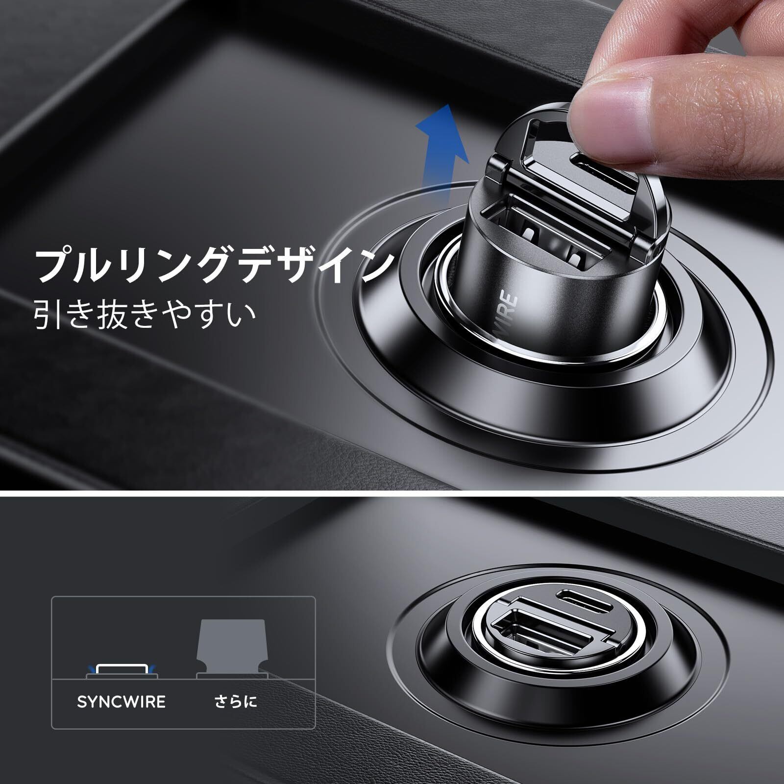 Syncwire シガーソケット USB & USB C カーチャージャー 2ポート Type C カーチャージャー 12V/24V車対応 出っ張らない しがーソケット USB 車載充電器 iPhone 16/15/14/13/SE/12/11/X/8 Xperia Samsung iPadなどに対応