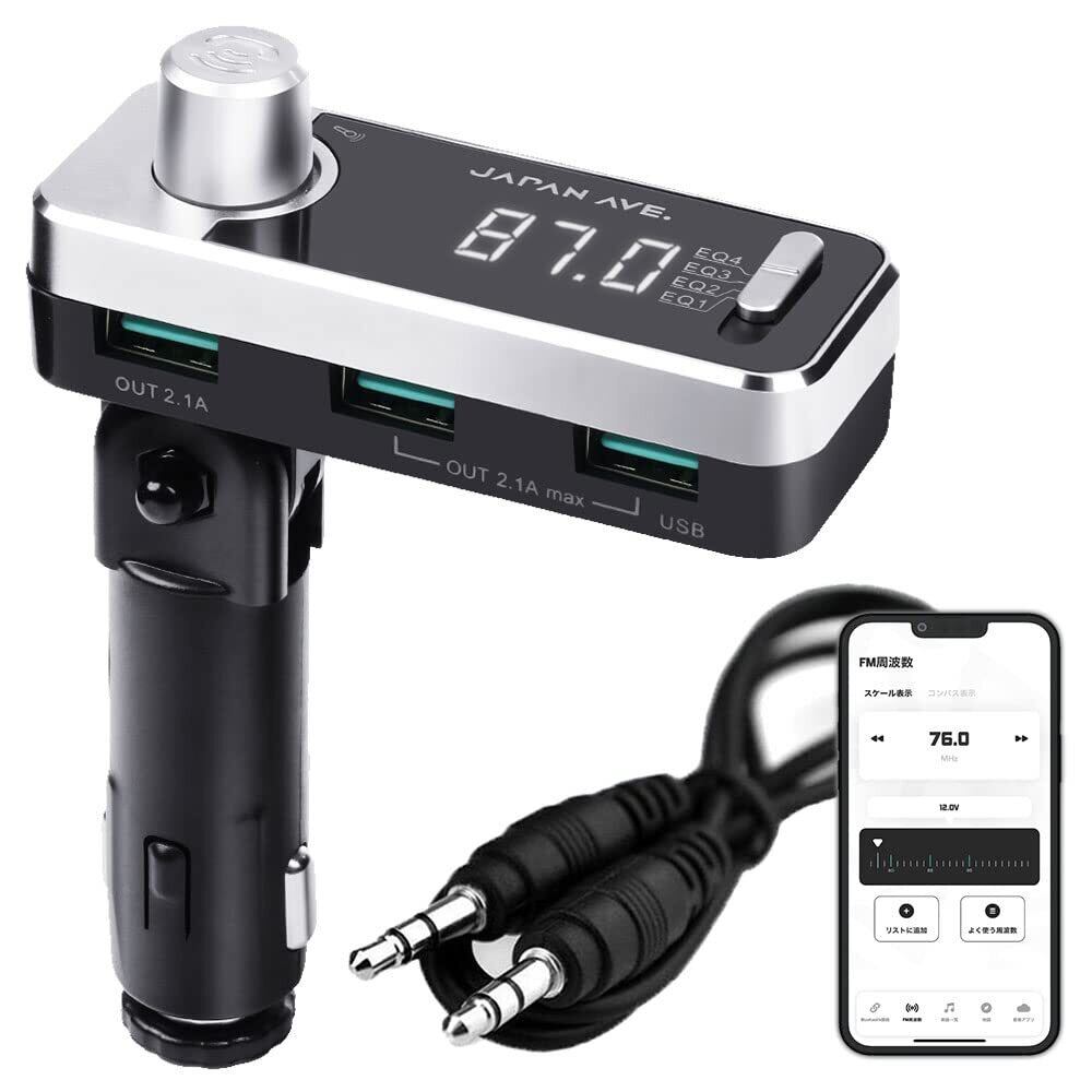【 急速充電USB×3丨最大4.2A 】 音楽再生しながら、iPhoneやiPadを "最大4.2A" の急速充電かつ "最大3台" まで同時充電が可能。Googleマップ、Youtube動画など、商品電力が激しいアプリ使用中でも、電池残量を気にすることなく急速充電が可能です 【 簡単1分セットアップ 】 FM機器が初めての方でも、わずか1分で接続ができる仕様。さらに、2度目以降はエンジンONで自動接続される設定に調整しております。 【 有線接続で音楽再生 "AUX-IN・OUT" 対応丨2way仕様 】 iPhone・iPadとの "Bluetooth接続 (無線)" はもちろん、Bluetooth非対応のiPod・ウォークマンを付属オーディオケーブルで "有線接続" して、FM無線なしでもカーオーディオから高音質での音楽再生することが可能になりました。【 音質改善丨より快適な音楽再生 】長年の改良でついに従来のAUX接続時とBluetooth接続時に生じる多少の音量差が大幅に改善しました。Bluetooth接続時でも有線接続時(AUX接続)とほぼ同等の音量での音楽再生を実現
