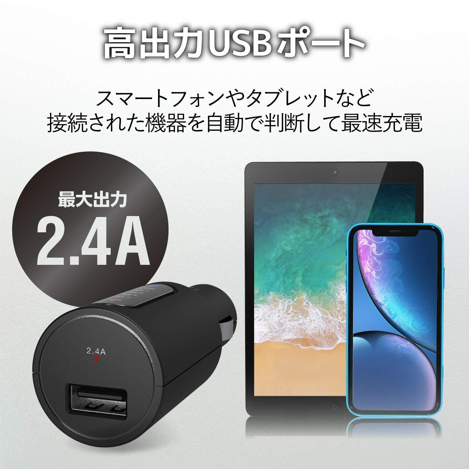 出力2.4Aでスマートフォンやタブレットを充電できるUSBポートが1つ付いています。