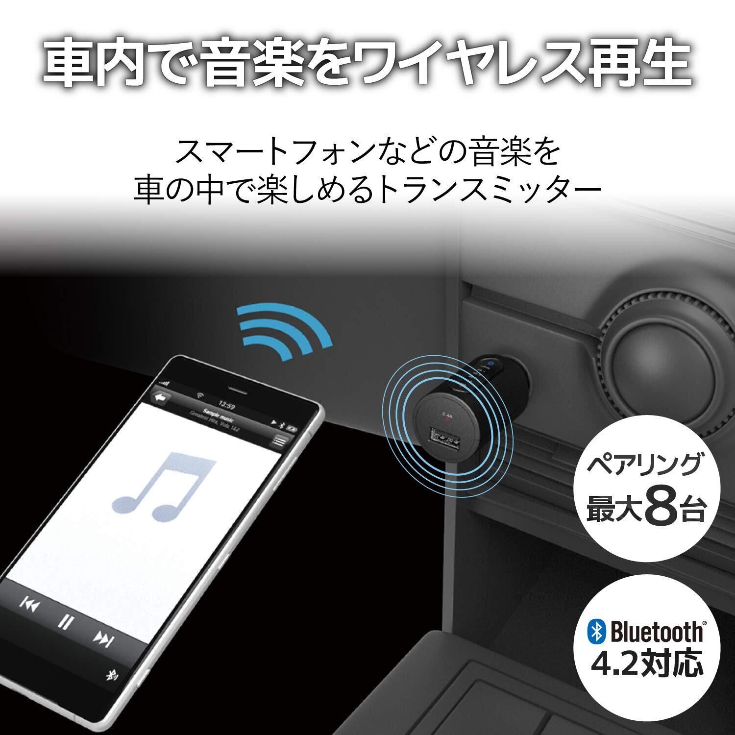 エレコム FMトランスミッター/スマートフォン/Bluetooth/USBポート付/2.4A/ブラック