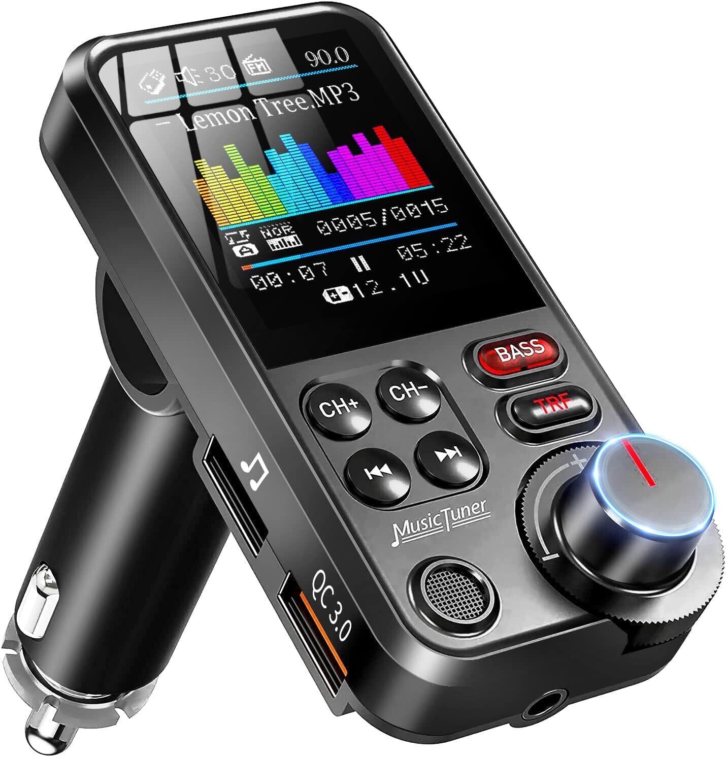 FMトランスミッター HUNDRUP(第四世代) 車載FMトランスミッター Bluetooth5.0 7種類EQ設定可能 QC3.0急速充電 2つUSBポート Bluetooth/USBメモリ対応 1.8インチカラースクリーン 高音/低音DIY調整 ハンズフリー通話 AUX有線接続 Uディスク microSDカード 4つ音楽再生モード 12-24V車対応 周波数76~108Mhz 日本語説明書