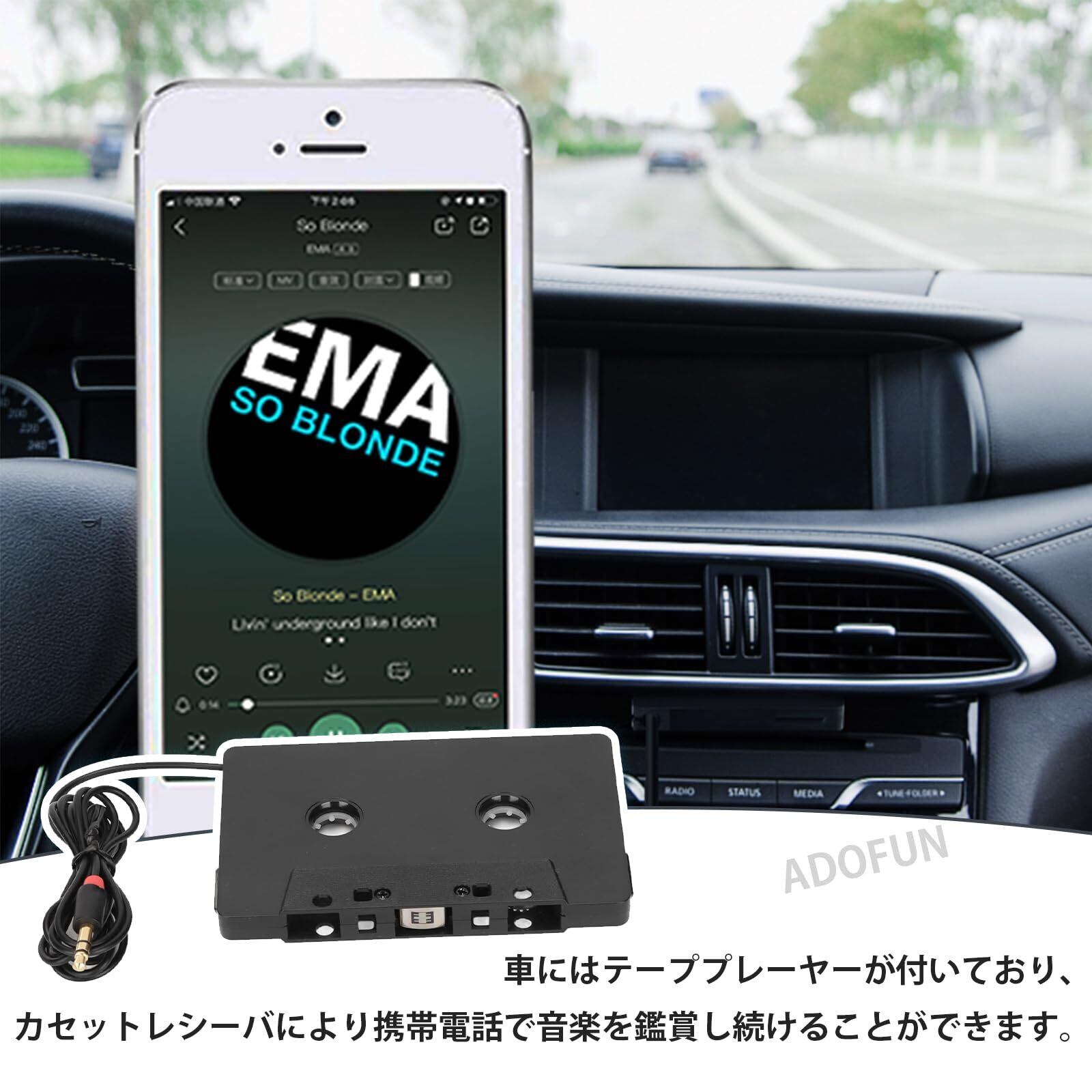 カーカセットアダプター オーディオ アクセサリーカー 3.5mmカーカセットアダプター カセットからAuxアダプター 磁気 変換 MP3 プレイヤーブラック