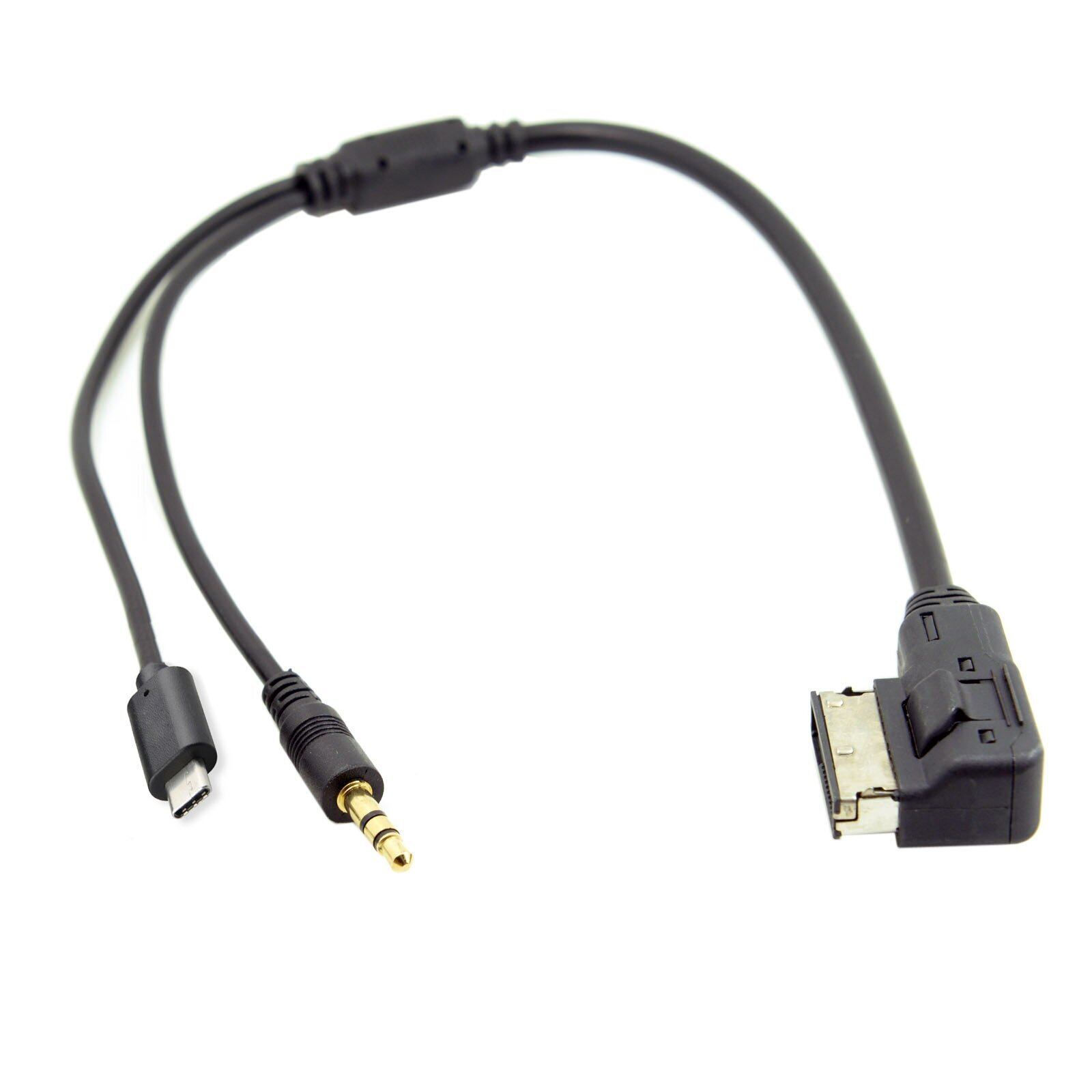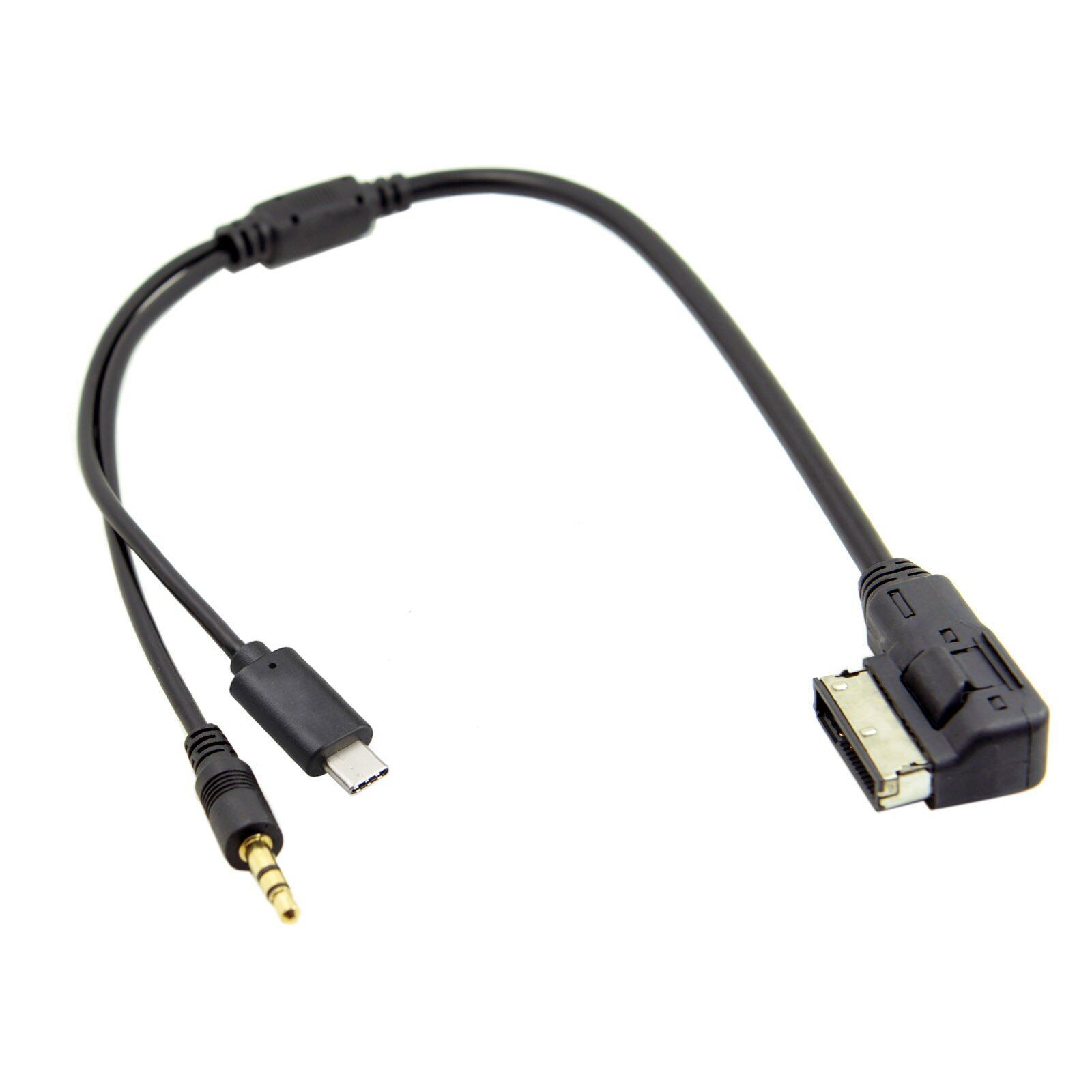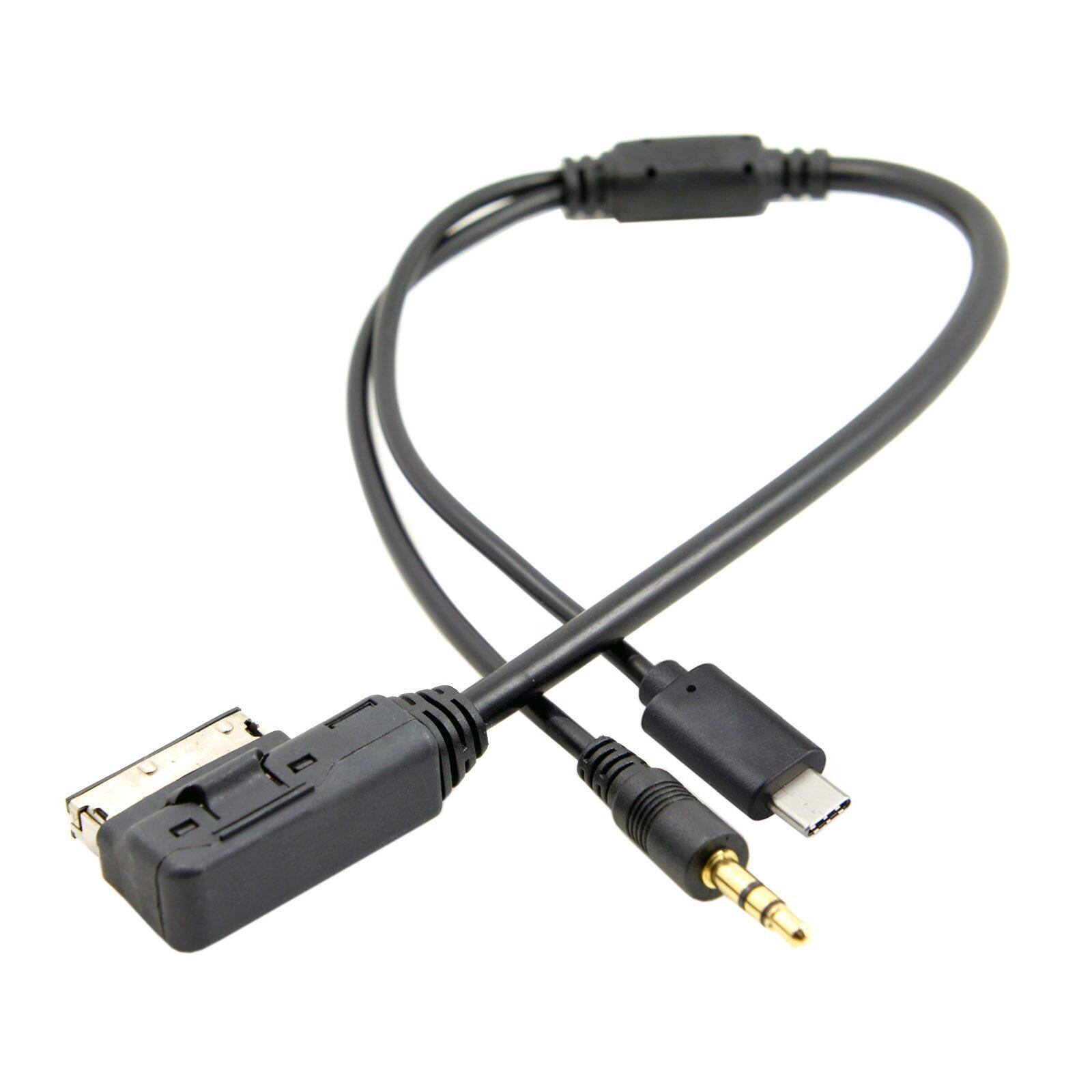 Cablecc Media In AMI MDI→ステレオ 3.5mm オーディオ & USB-C AUXアダプターケーブル 車用 VW 2014 A4 A6 Q5 Q7用