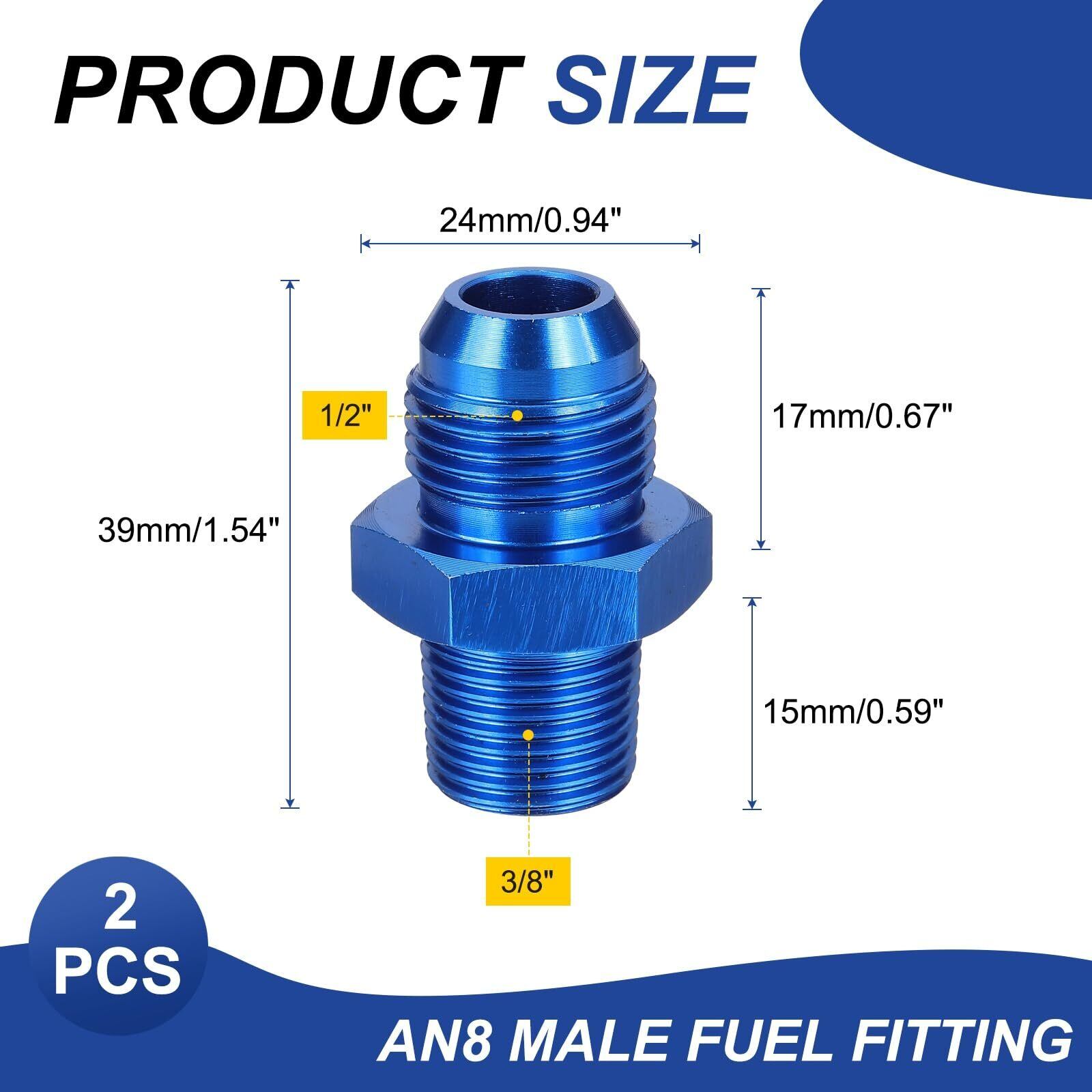 uxcell 2個 AN8 メール フレア から 3/8" NPT パイプ フィッティング アルミニウム ストレート メール ユニオン カプラー コネクター 燃料 ホース アダプター 自動車用 ブルー