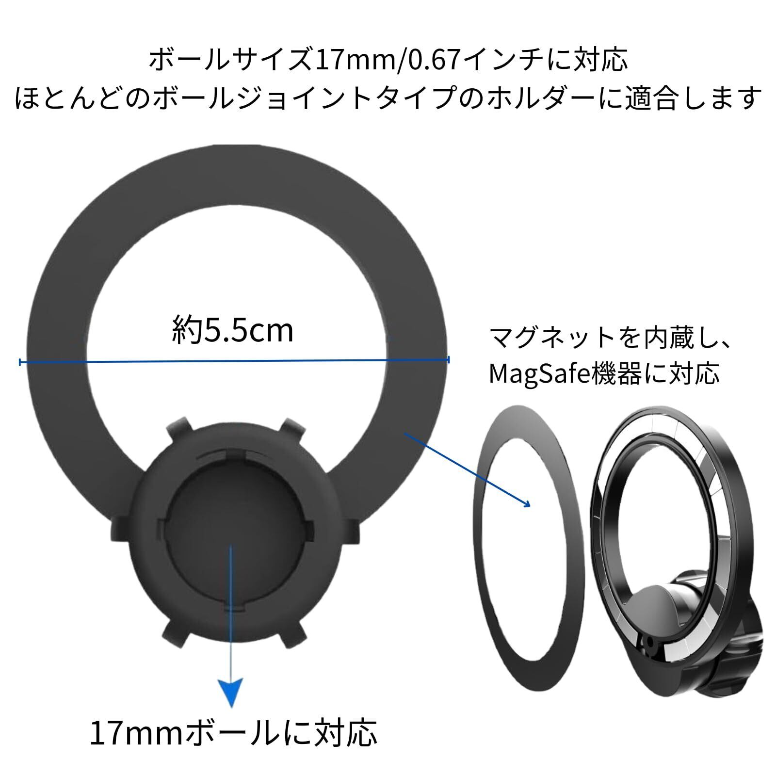 MagZen マグネットボールマウントベース MagSafe対応 360度回転 17mmボール用 スマホホルダーをMagSafe対応にアップグレード
