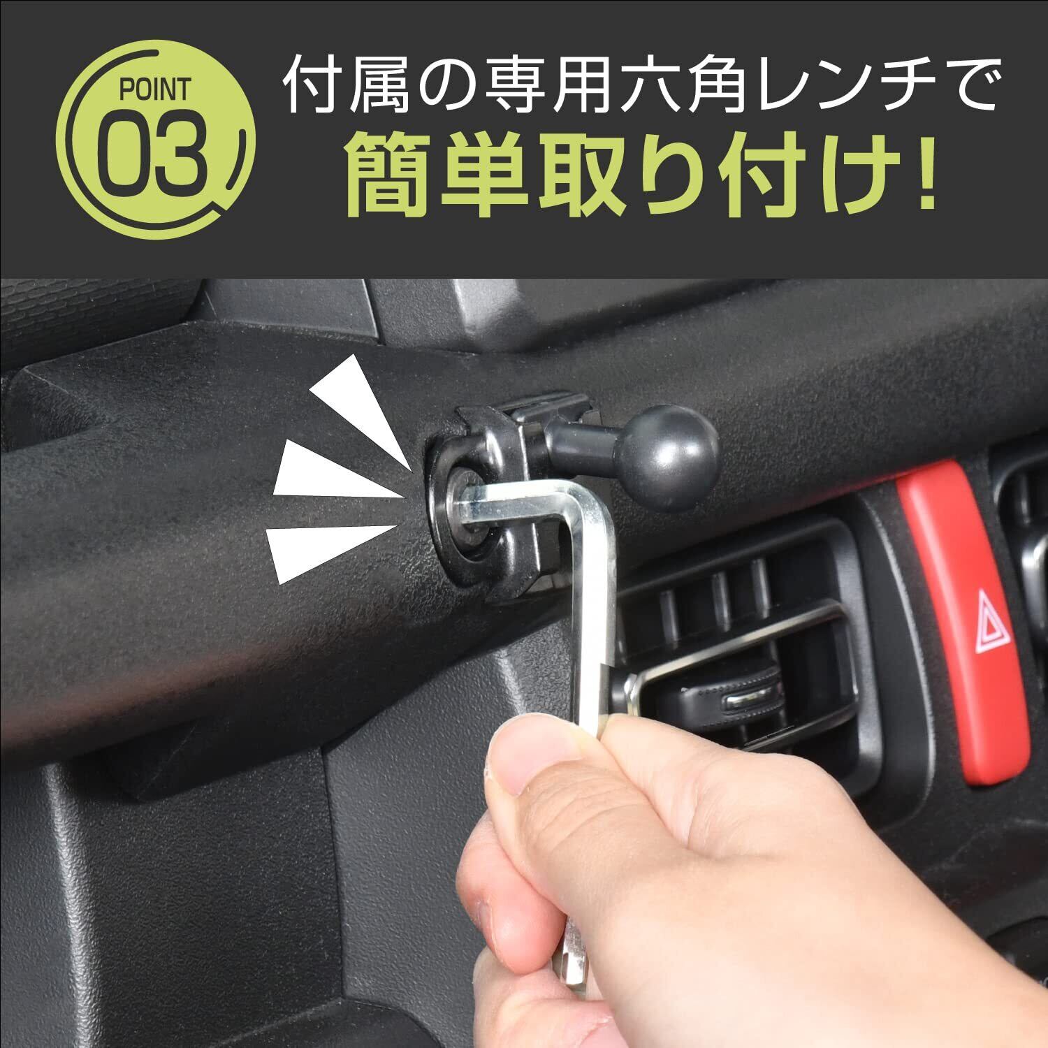 スズキ ジムニー&シエラ&ノマド(JB64/JB74/JC74)専用のスマホ/スマタブホルダー専用マウント商品です。耐久性抜群の亜鉛合金製なので強度もありなおかつコンパクトな製品です。5ドア JIMNY NOMADE にも対応しております。