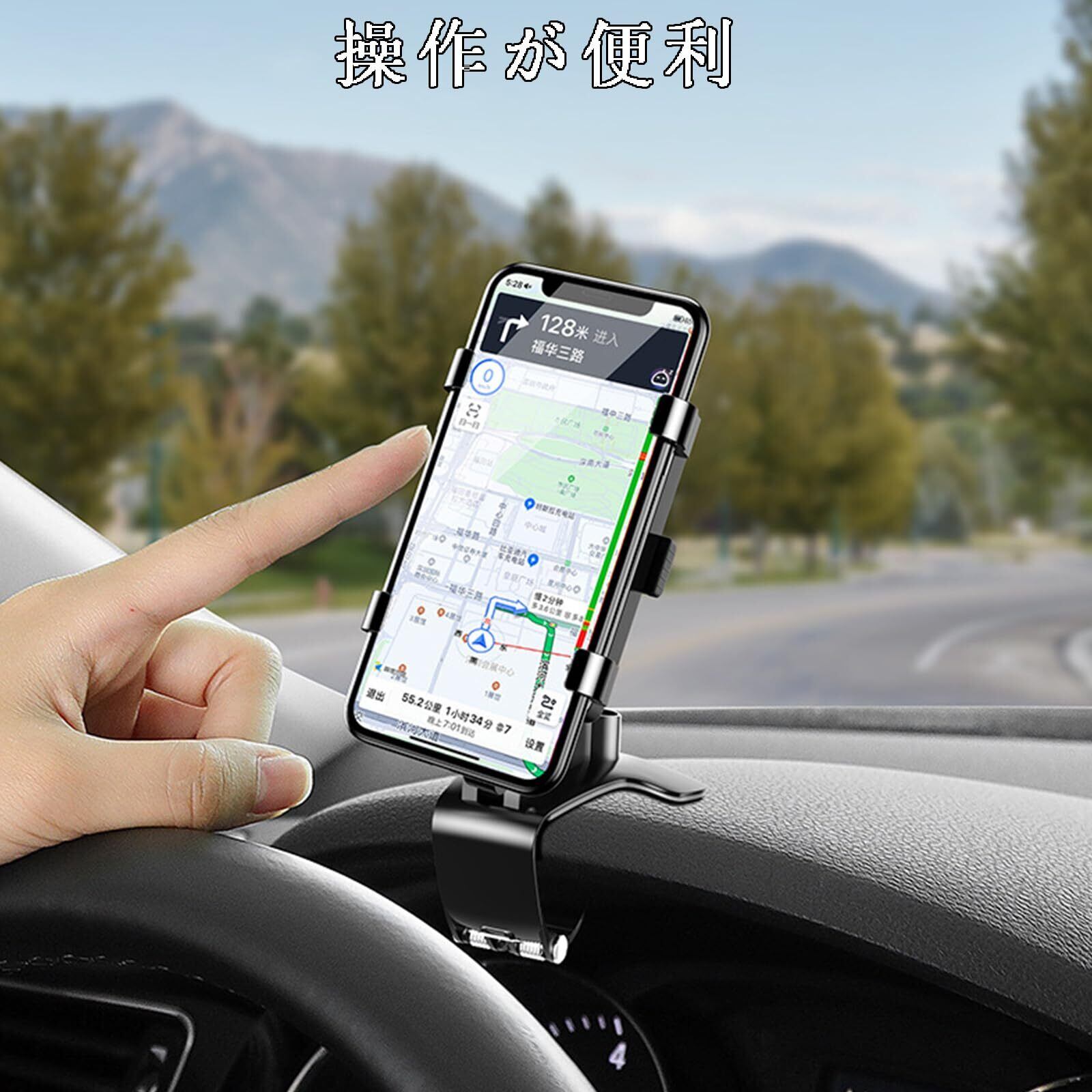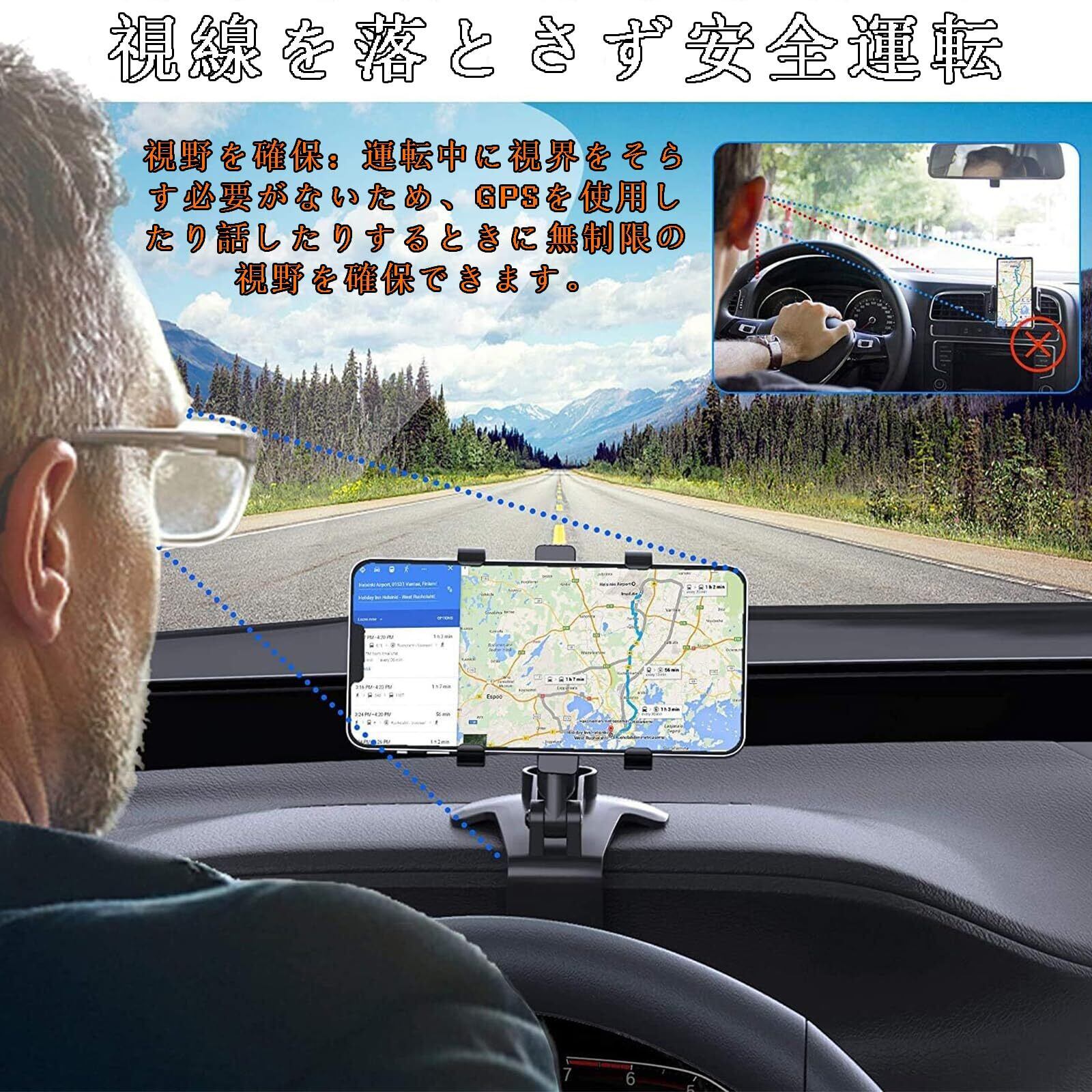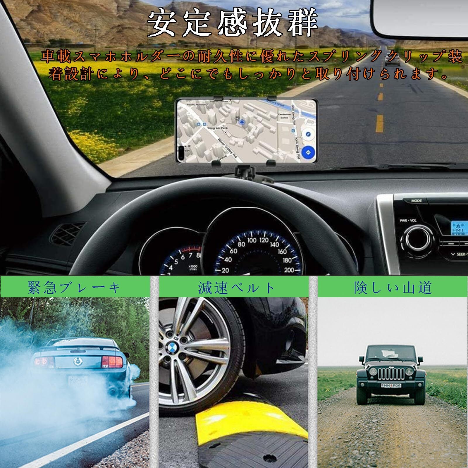 【6業界初クリップ式】強力なスプリングクリップを使用して、ダッシュボードの縁やサンバイザーやバックミラーなどに取り付けます。視野を確保:運転中に視界をそらす必要がないため、GPSを使用したり話したりするときに無制限の視野を確保できます。より安全な運転: 頭を下げて運転することは禁止されています,ダッシュボードのスマホホルダーはドライバーの視界の前にあります。
