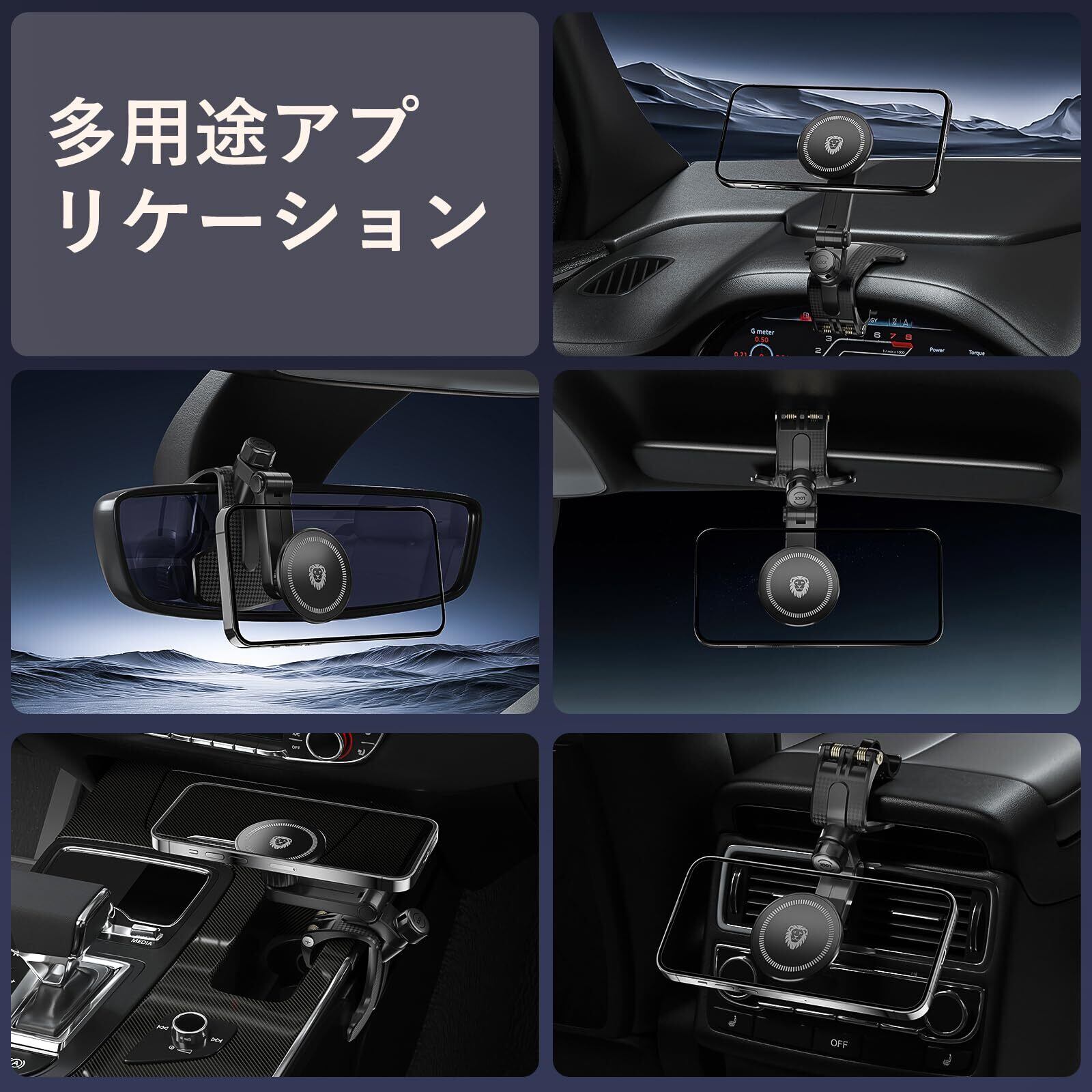 【多彩な設置場所に対応】 この車用スマホホルダーは、ダッシュボード、ルームミラー、サンバイザーなど、車内の様々な場所に簡単取り付け可能。携帯ホルダー 車として、あなたの車内レイアウトに合わせて柔軟に設置できます。