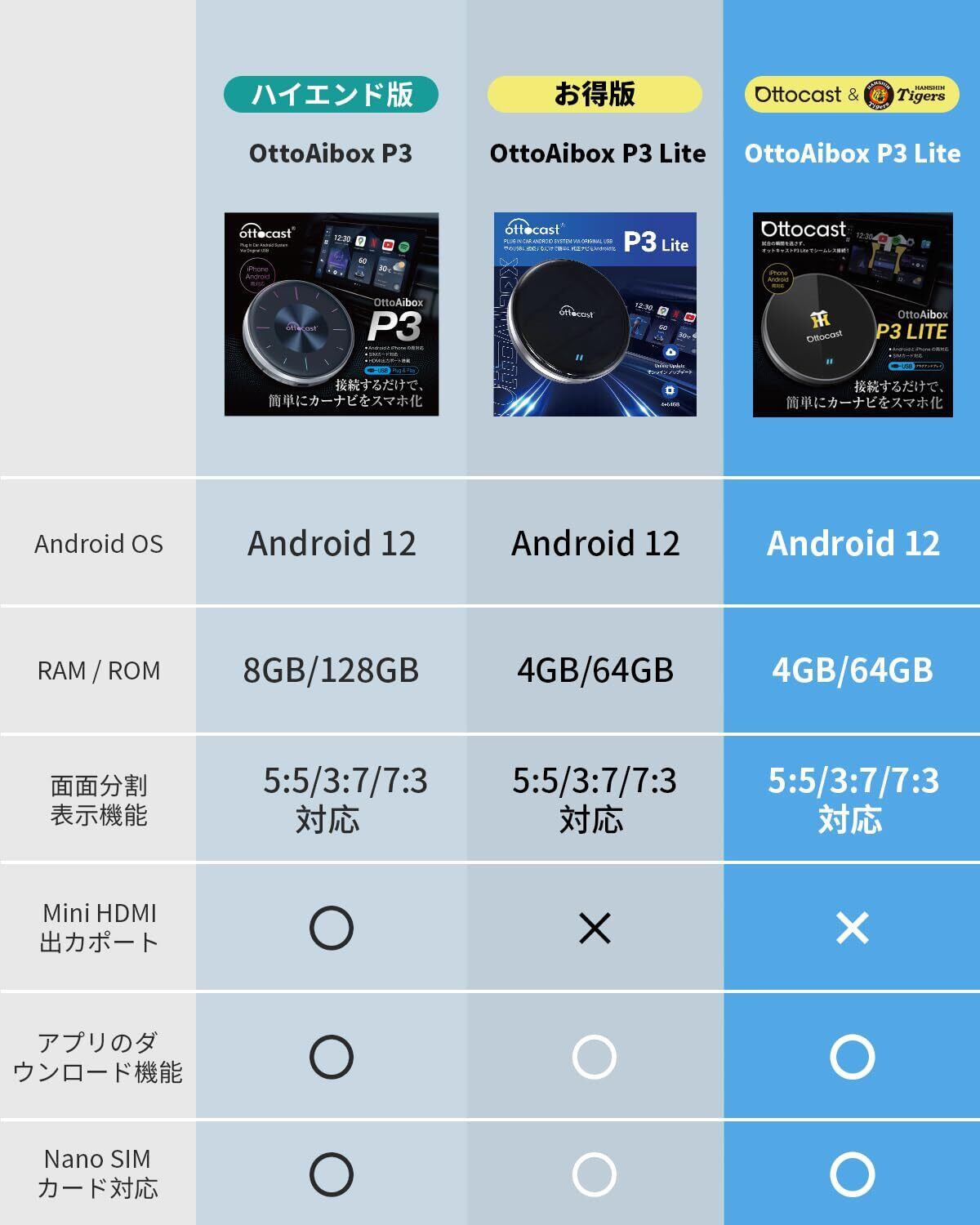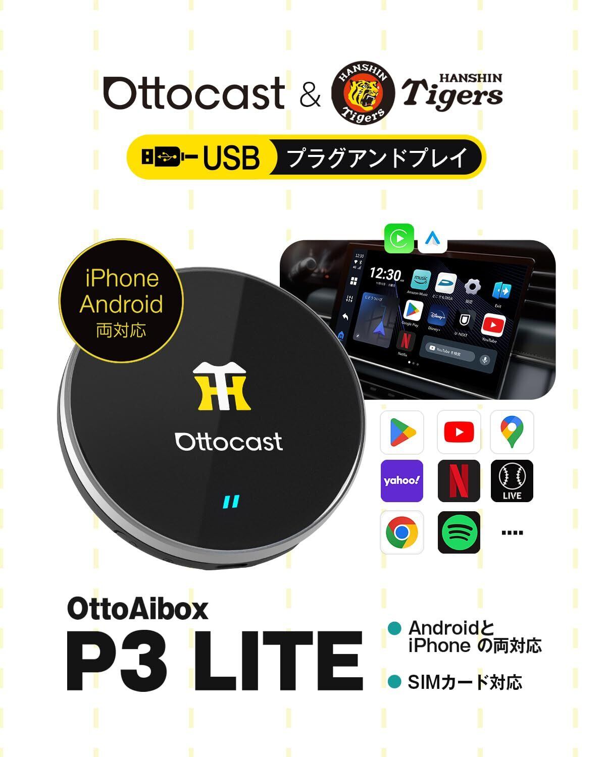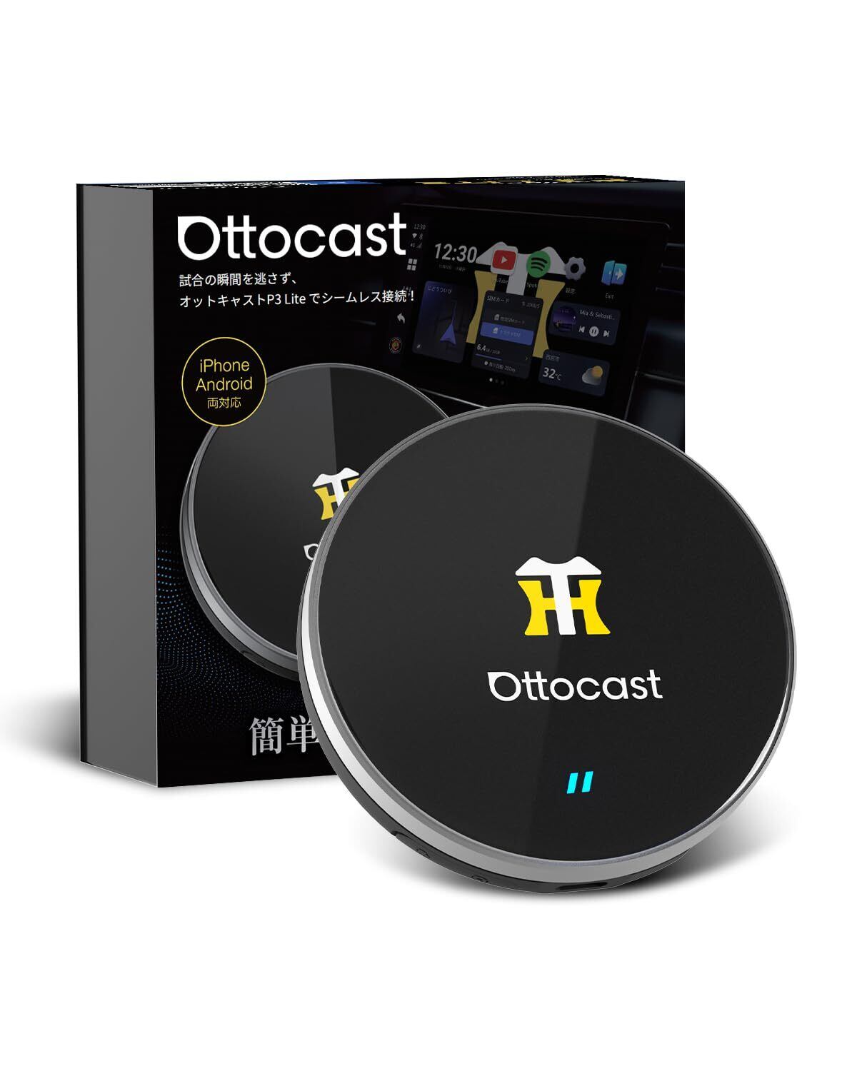 Ottocast オットキャスト OttoAibox P3 Lite CarPlay AI Box アダプター Android Carアダプター Android 12モデル Youtube Netflix など動画視聴可能 純正有線CarPlay車両 ワイヤレス化
