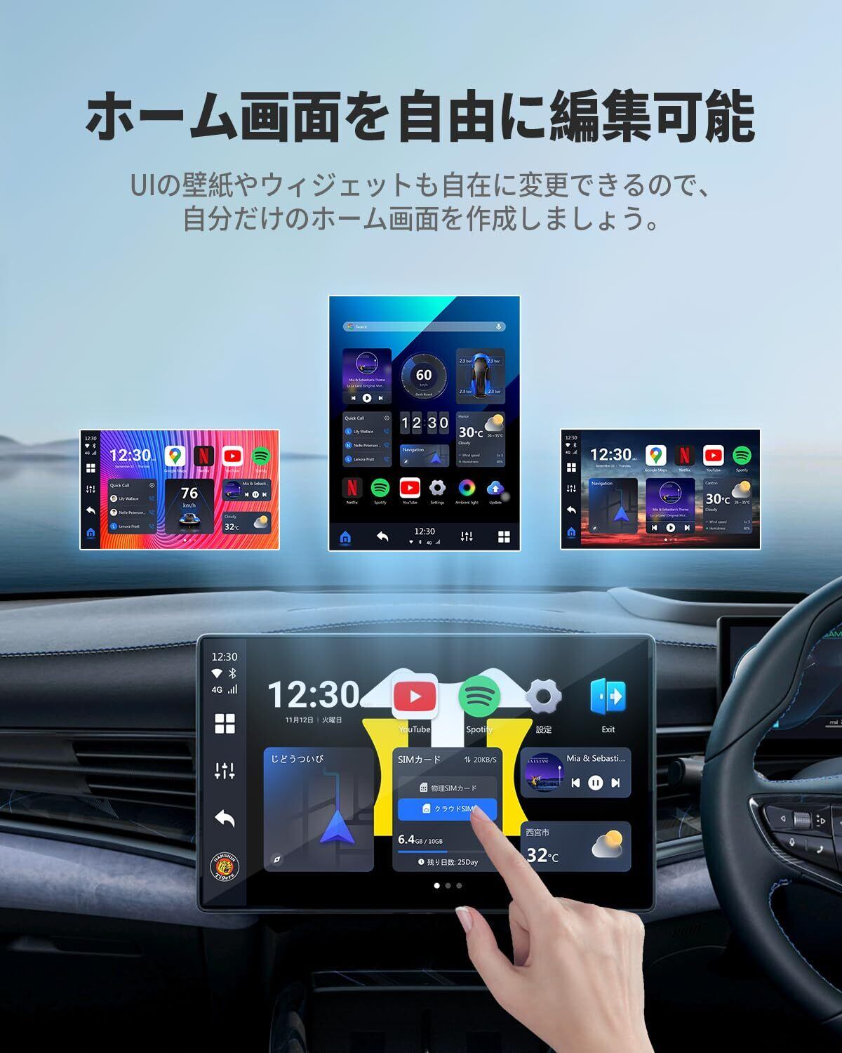 【多彩なアプリに対応】YouTube、Netflix、Huluなどの動画配信アプリから、GoogleマップやYahoo!カーナビといったナビゲーションアプリまで、幅広いアプリを自由にダウンロードして楽しむことができます。また、 MusicやYouTube Musicなどの音楽アプリも利用でき、ドライブ中に好きな音楽や動画コンテンツを存分に楽しめます。