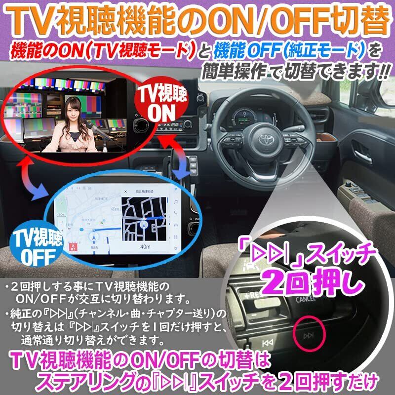 走行中にテレビ・DVD・HDMI(各オプション装着車)が見れるTVキャンセラーです。 長距離ドライブ時に同乗者の方が退屈しないように、また渋滞でのイライラの解消に!! じっとしているのがツライお子様がテレビやDVDを見ることが出来るのでお車での移動が楽しくなります!! 新型シエンタに対応しています!