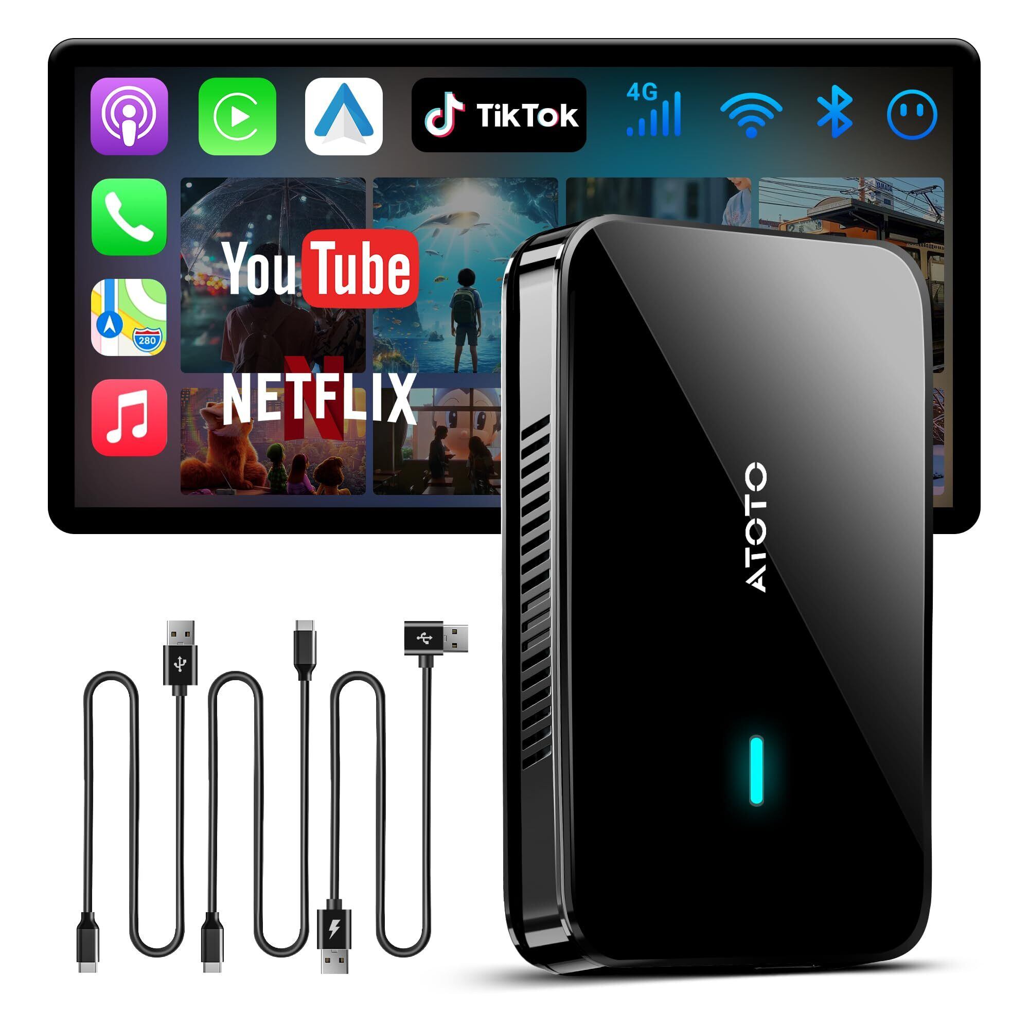 ワイヤレスCarPlay Ai Box AIボックス | YouTube/Netflixなど動画視聴可能| 純正有線CarPlay車両| Android Auto ワイヤレス化 ChatGPT搭載 | デュアルWiFi & Bluetooth | 128GB TFカード対応 | OTA更新CB4B, 4GB+32GB,ブラック