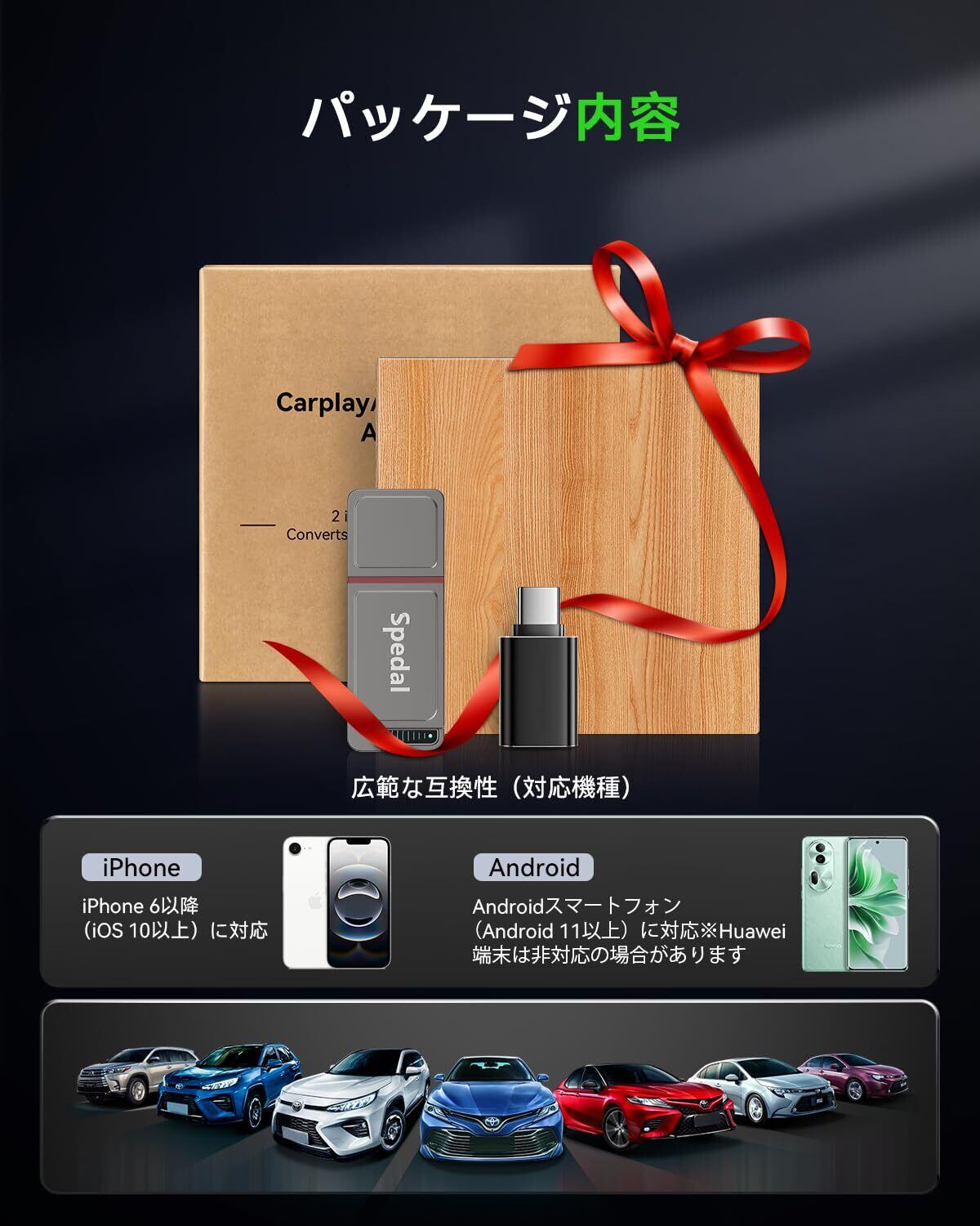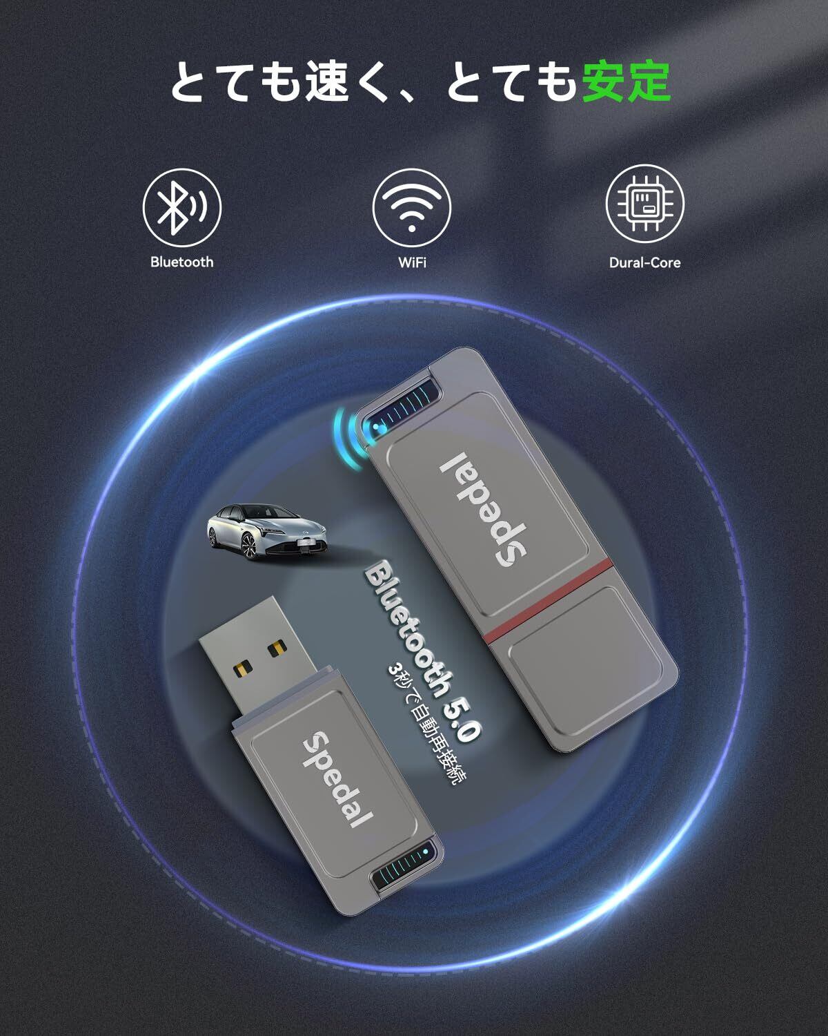 Spedal CarPlay&Android Autoワイヤレス アダプター CarPlay&AndroidAutoをワイヤレス化 既存の有線CarPlay/Android Auto搭載車専用 プラグ&プレイ 自動接続 iPhone iOS 10+/Android 11+対応 技適認証取得済み (グレー)