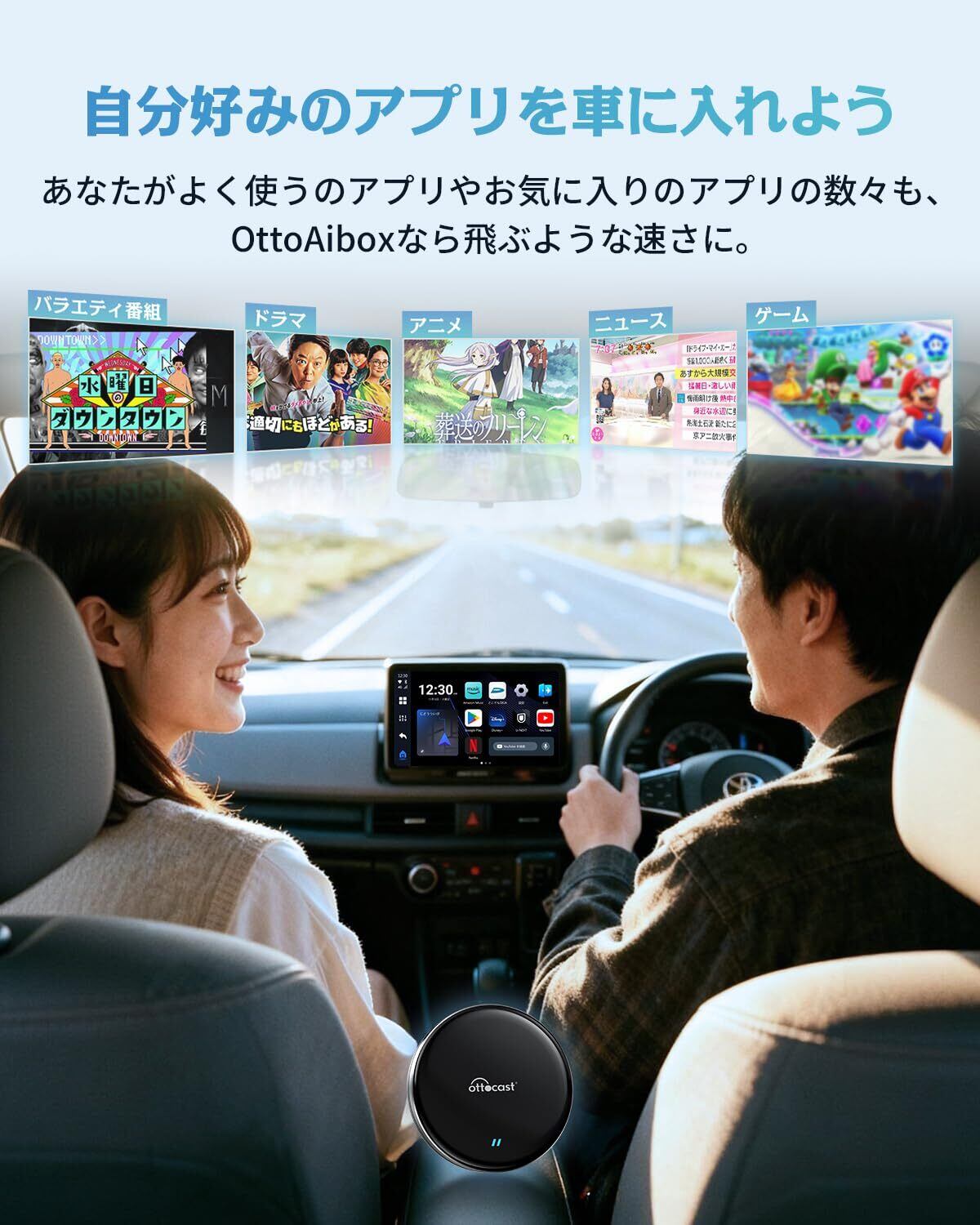Ottocast オットキャスト OttoAibox P3 Lite CarPlay AI Box アダプター Android Carアダプター Android 12モデル Youtube Netflixなど動画視聴可能 純正有線CarPlay車両 ワイヤレス化
