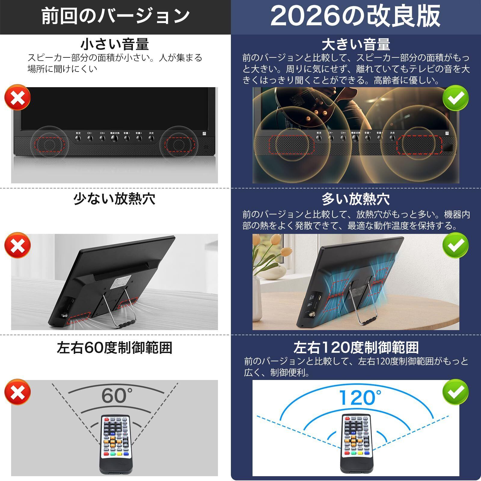 ポータブルテレビ テレビ小型 14.1インチ 高齢者向け 録画機能 簡単操作 HDMI端子搭載 YouTube視聴可能 大画面 大音量 軽い 薄い コンパクト 車載用バッグ付き 車中泊使用可能 スタンド/吊り下げ/車載の3種類設置 方式 リモコン付き 遠距離操作可能 病院に使用可能 (ブラック, 14.1インチ)