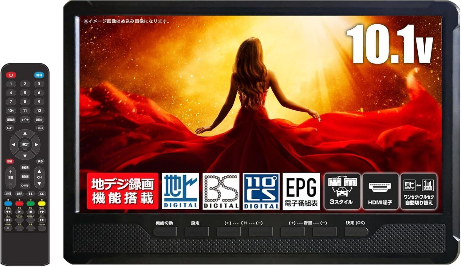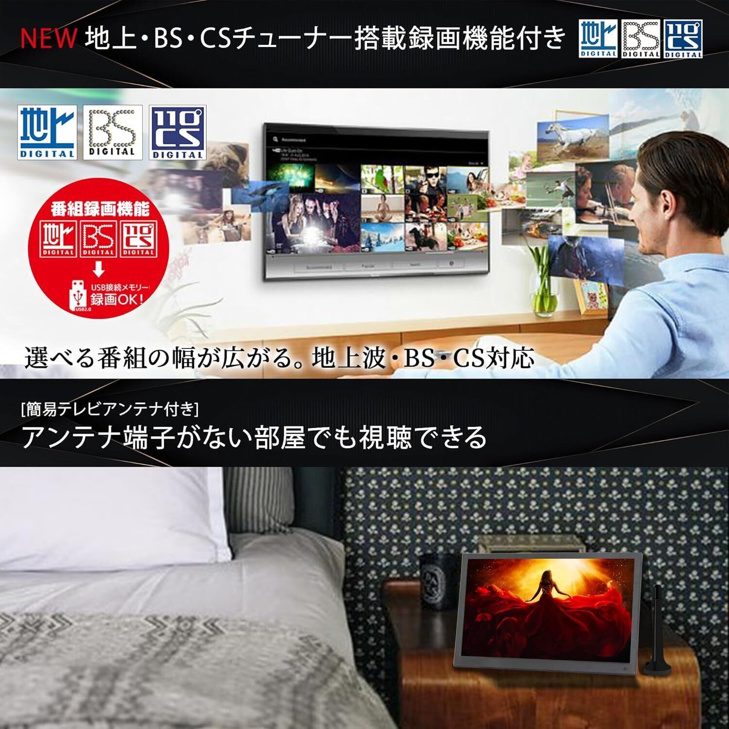 10.1型 ポータブル 液晶テレビ 地上/BS/CSチューナー搭載 ポータブルテレビ HDMI対応 10.1インチ 3波 車載用バック フルセグ 地デジ ワンセグ 1seg 2電源対応 アンテナケーブル 壁掛け ポータブル 9 10 12 14 インチ 型 TV o000