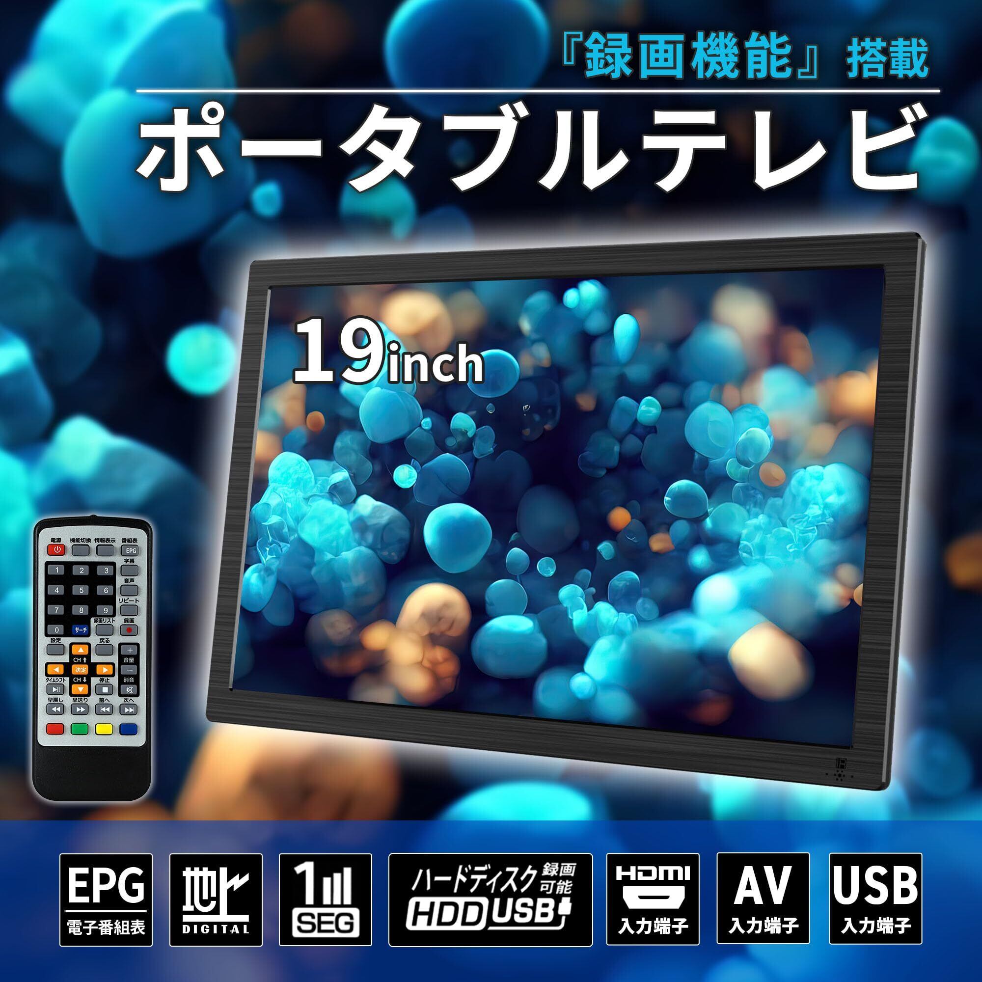 19型 フルセグ対応 ポータブル 液晶テレビ HDD録画機能搭載 地デジ HDMI入力 大型モニター 1440×900 ワンセグ/フルセグ自動切替 スタンド 壁掛け 写真/音楽/映像再生 ポータブル インチ V TV 9 10 15 14 14型 o000