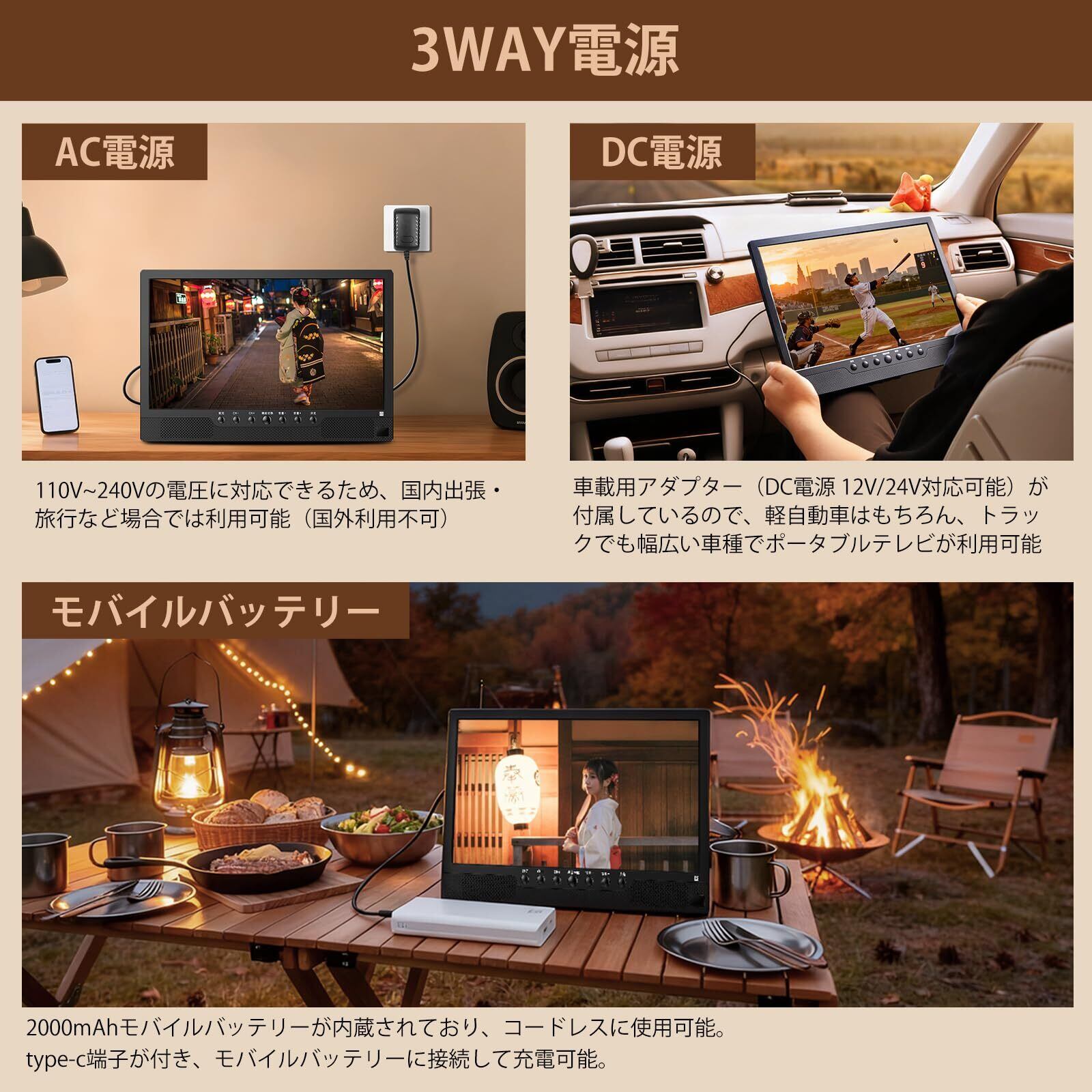 ポータブルテレビ 14.1インチ テレビ小型 軽い 薄い 大画面 大音量 高齢者使用可能 録画予約可能 簡単操作 HDMI端子搭載 YouTube視聴可能 コンパクト 車載用バッグ付き 車中泊 リモコン付き 遠距離制御 イヤホン付き スタンド/吊り下げ/車載3WAY設置