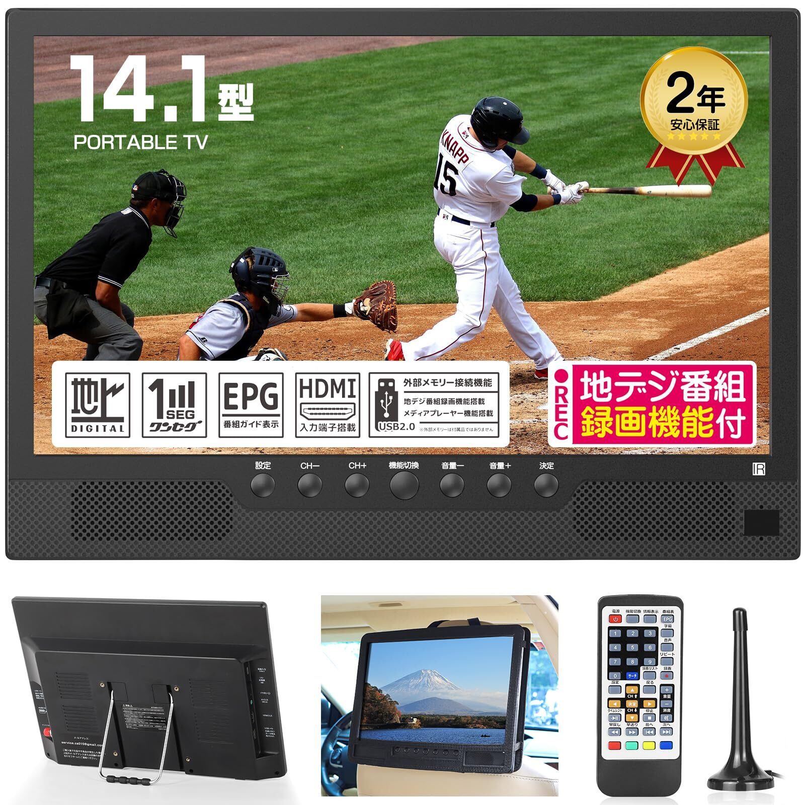 MIYOKI ポータブルテレビ 液晶モニター 録画機能 14インチ 小型 テレビ ワンセグ フルセグ自動切替 HDMI搭載 3WAY電源対応 移動用 コンパクトTV 卓上/壁掛け/車載 リモコン付き 車載用バッグ 車中泊用 アンテナ YouTube視聴可能 地上デジタル放送 屋外 屋内 プレゼント (ブラック)