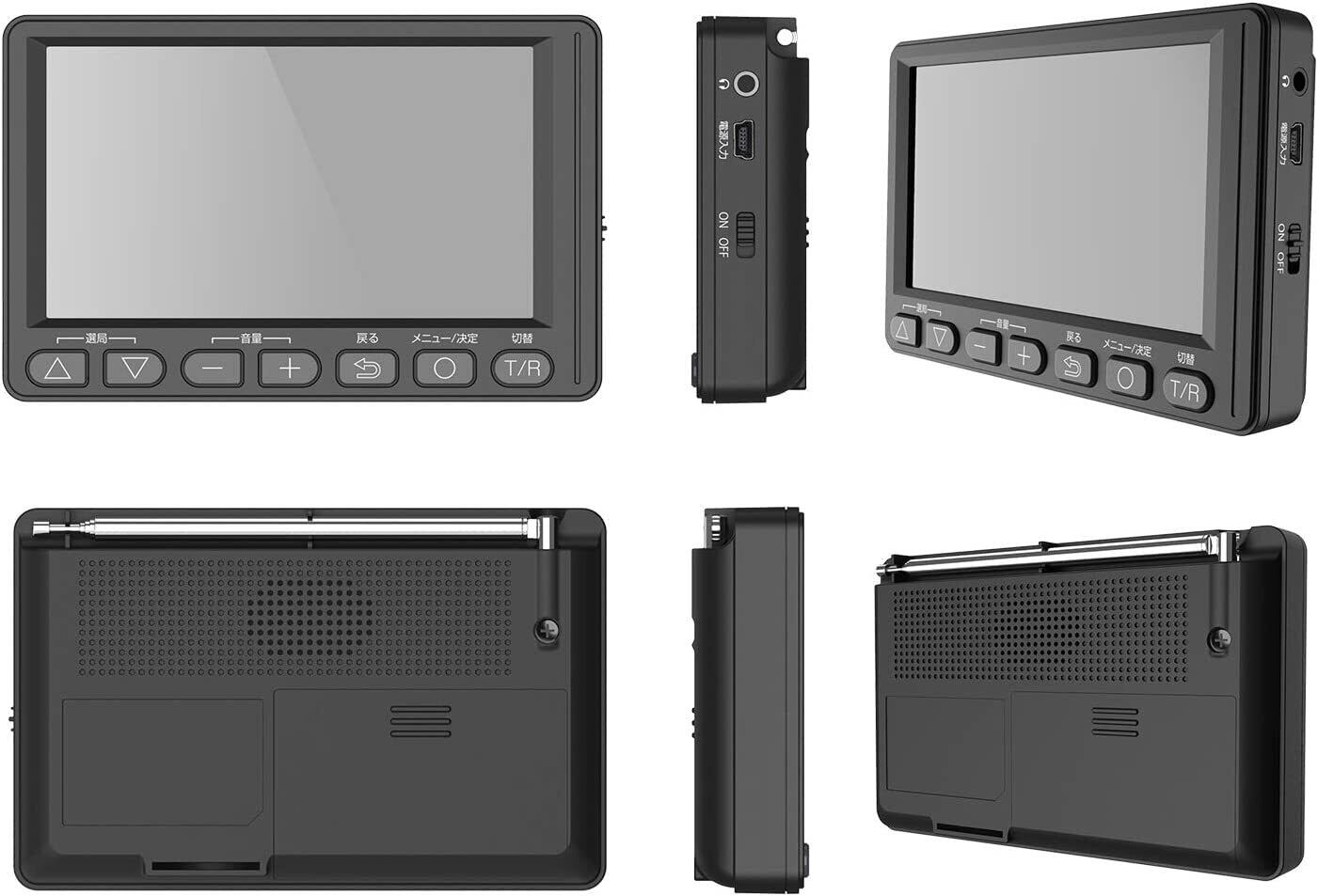 携帯テレビ AM/FMラジオ ポータブルテレビ 4.5インチ ラジオ搭載 IPS液晶 ブラック 副音声・字幕切替 チャンネルリスト 番組表 スタンド付き ワンセグ テレビ ポケットサイズ TV 1seg 軽量 コンパクト 持ち運び ホームラジオ 電池 充電ケーブル付き o000