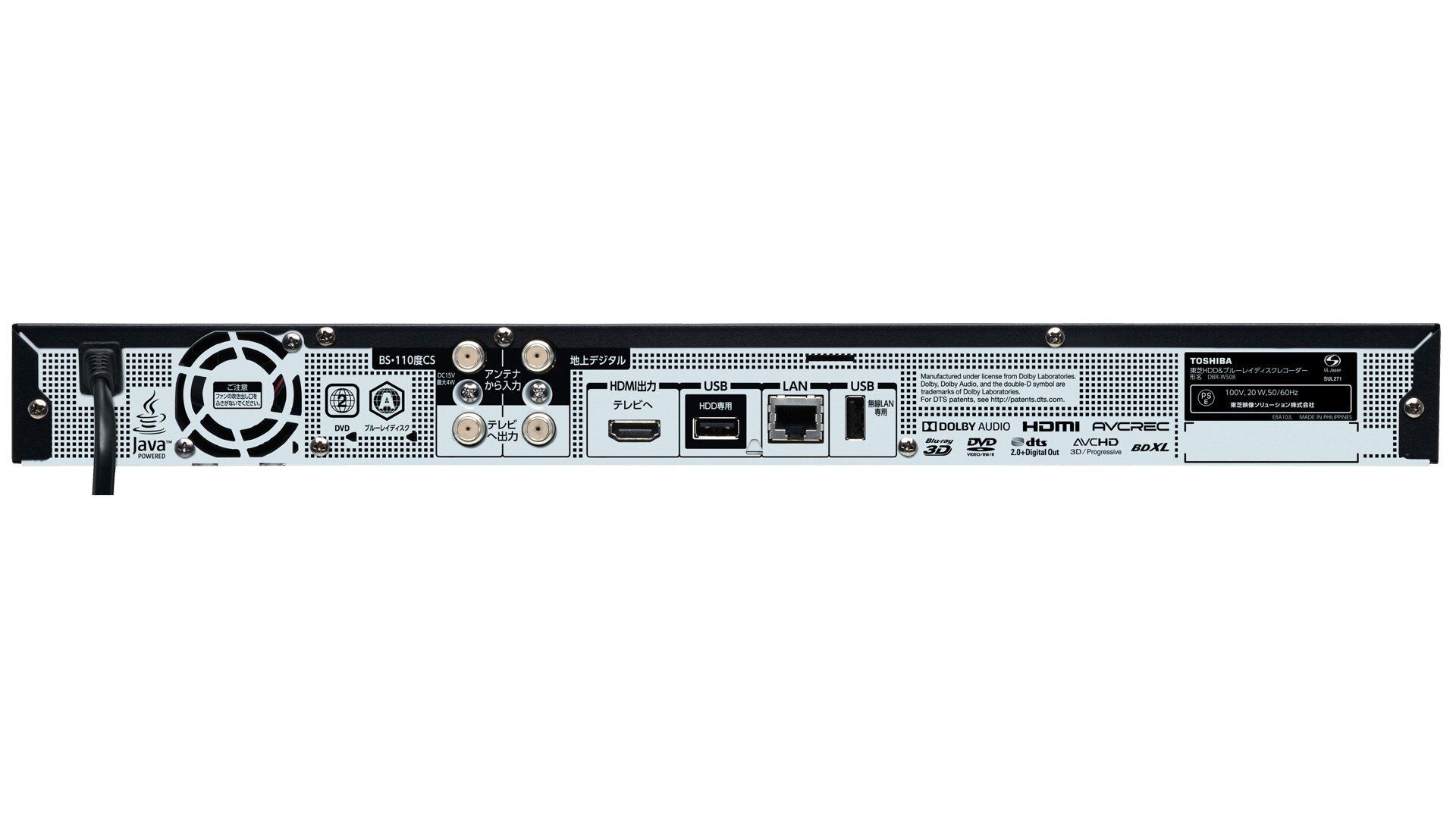 記録/再生可能メディア:内蔵HDD , BD-R/-R DL/-R XL/-RE/-RE DL/-RE/XL, DVD-R/-R DL/-RW