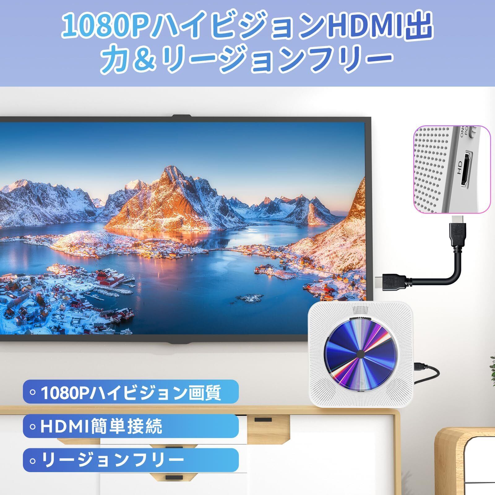 Fohil DVD/CDプレーヤー Bluetooth受信/送信両対応 HDMI出力 最大1080P対応 リージョンフリー DVDプレイヤー HiFiスピーカー内蔵 FMラジオ USB再生 AUXモード A-Bリピート再生 映画鑑賞/音楽再生/胎児教育/語学学習 PSE認証済み 日本語説明書付き ホワイト
