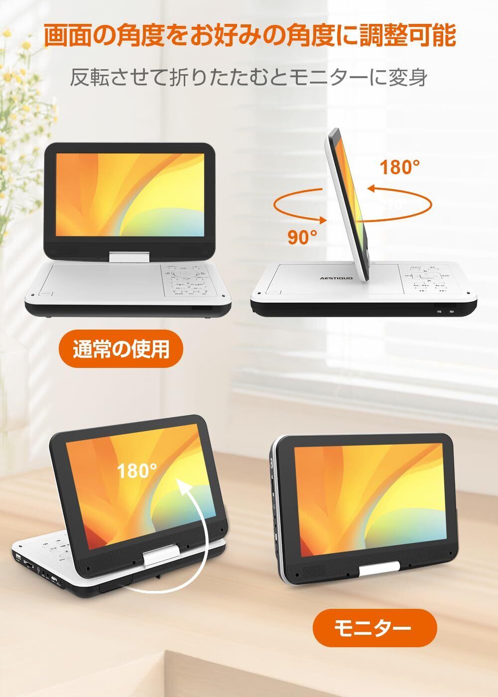 業界独自技術目の保護モード 暗い部屋で映画鑑賞も目に優しい1024*600HD液晶パネル搭載、臨場感たっぷりの映像が魅力、軽量化に実現したうえ省エネ、より鮮明な画像を実現したポータブル dvdプレーヤー 。DVDプレーヤー業界独自技術目の保護モードを採用され、ワンボタンで目の保護モードをONにして、見やすい画面を表示、長時間鑑賞による目に優しい。暗い部屋で映画鑑賞もが疲れにくい。一人や家族と楽しく、のんびりの時間を過ごす、おしゃれと実用性の良さを兼ね備えた再生用dvdプレーヤー。