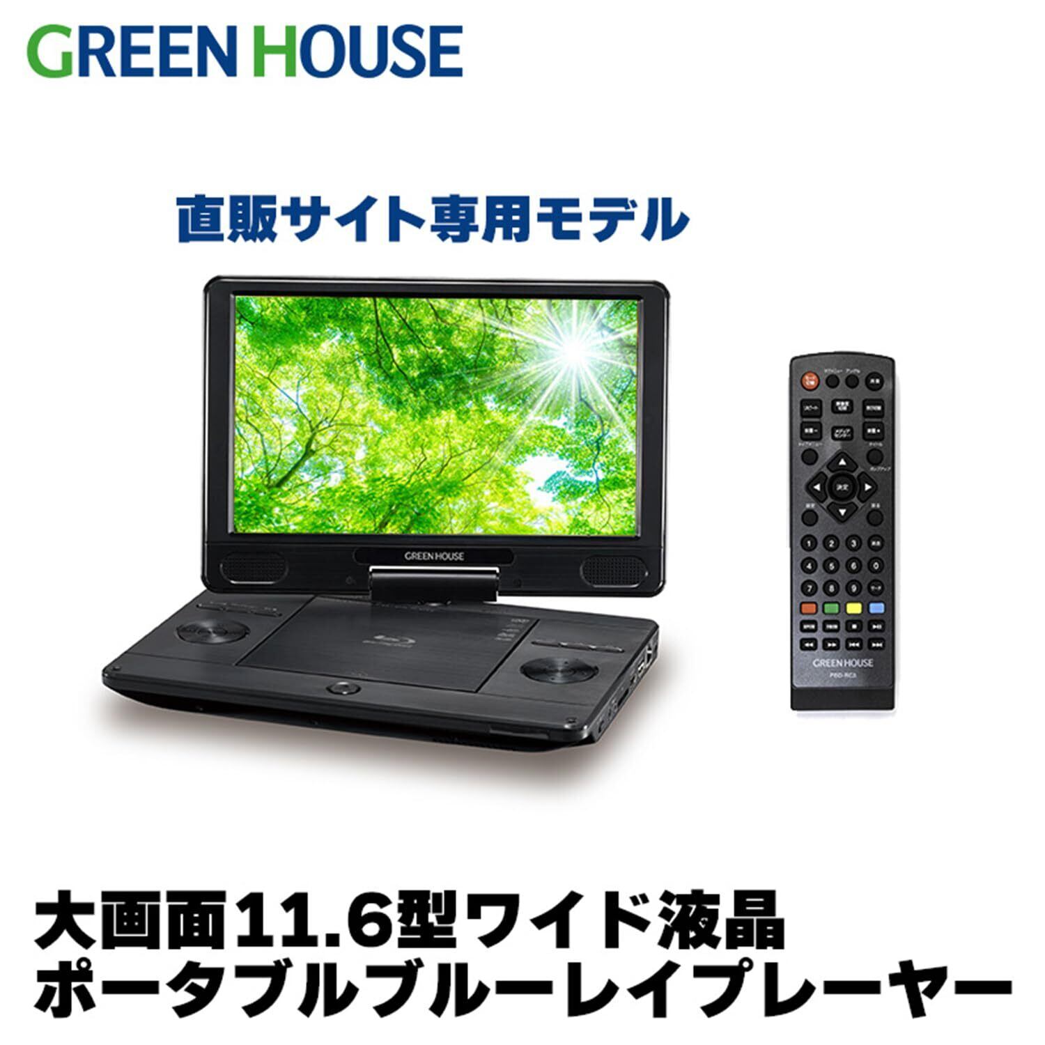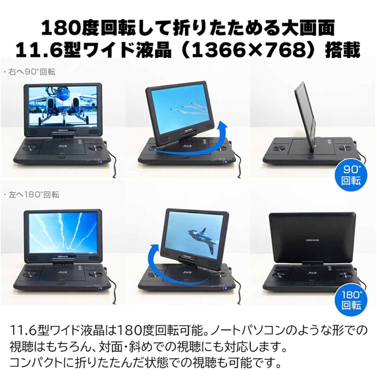 グリーンハウス ポータブルブルーレイプレーヤー 11.6型ワイド Blu-ray バッテリー内蔵 プレイヤー 車載用 小型 軽量 車載 DVD CD 音楽 GH-ECPBD11B-BK