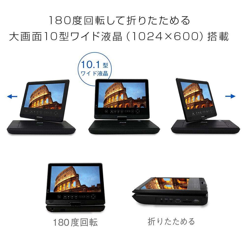 グリーンハウス 10.1型ワイドTFT液晶(LED) ポータブル ブルーレイプレーヤー GH-PBD10D-BK