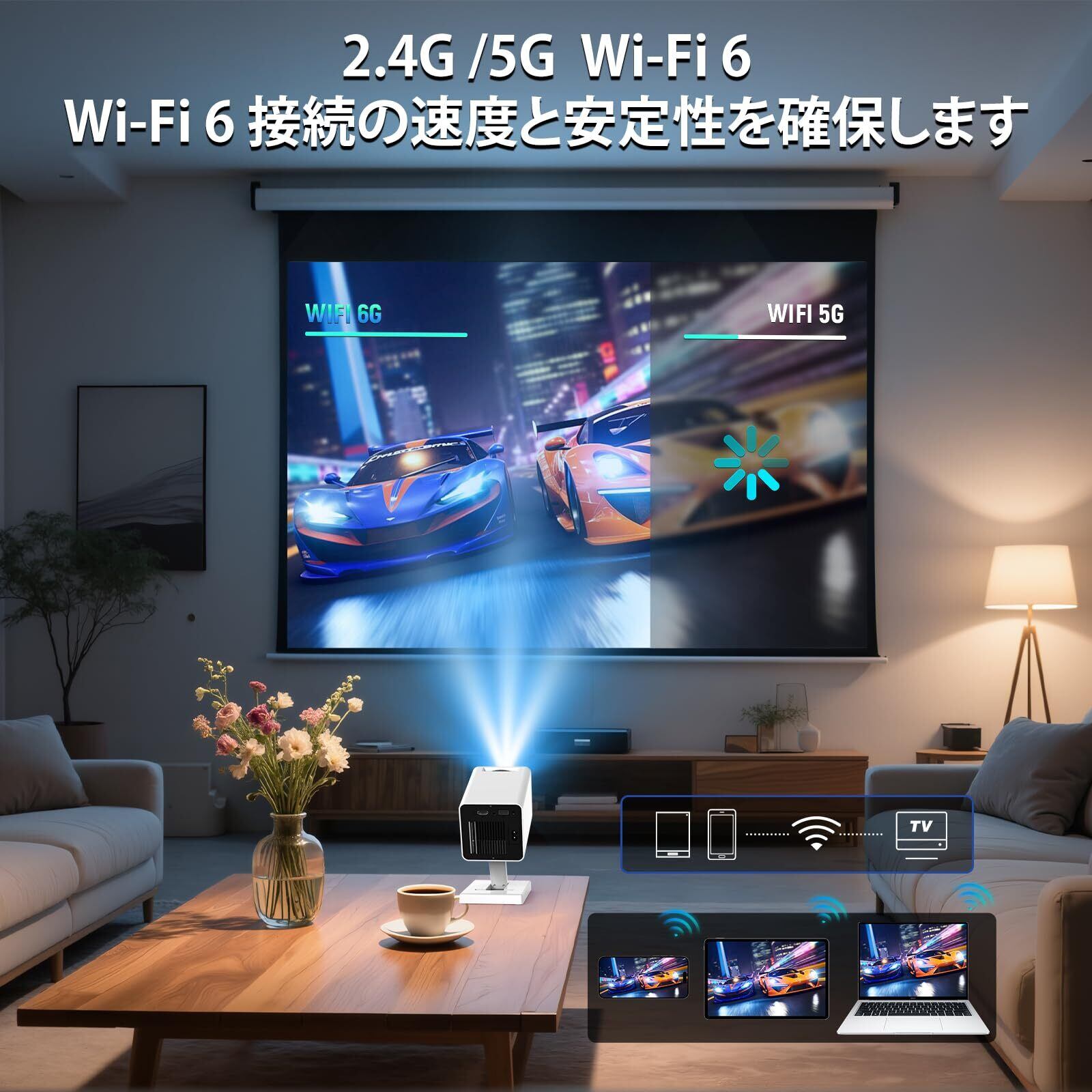 プロジェクター 家庭用 小型 2026アップグレード版 25000LM 1080P 高輝度 Wifi6 Bluetooth5.4 16GBROM 4コアCPU AndroidTV APP利用可能 内蔵スピーカー 軽量 自動台形補正 天井投影 防塵 静音 短距離投影 180°回転 多言語対応システム IOS/Android/PC/PS5/Switch/DVD/USBなど対応