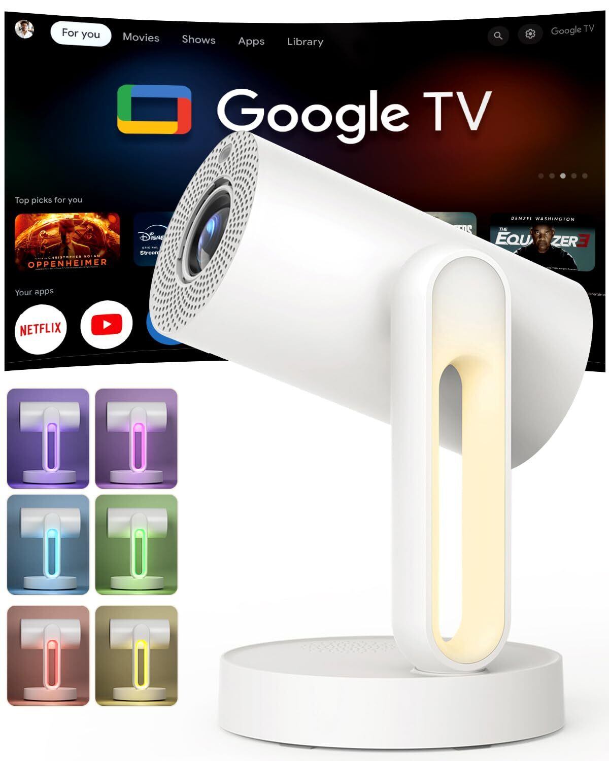 特徴 Google TV内蔵 、ナイトライト搭載 、一体型ブラケット、短投、オートフォーカス、デジタルキーストーン補正、静音24.5dB 、内蔵スピーカー 、軽量1.1KG 、防塵 、完全密閉型光学エンジン