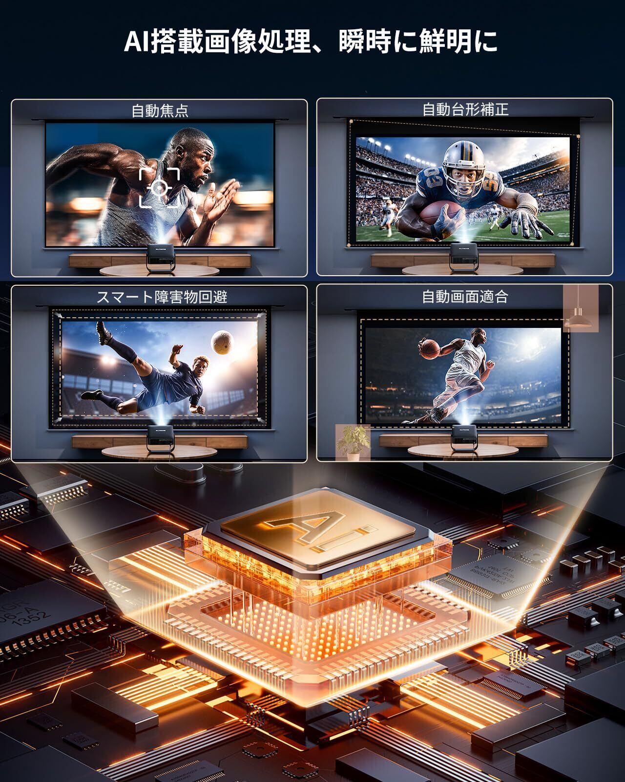➤【初心者でもAI自動設定—瞬時に完璧な映像】S36の自動設定システムは、オートフォーカス、自動台形補正、障害物回避、自動画面適応、最大50%のズーム機能を備えています。どこに置いても——逆さまでも——プロジェクターは数秒で自動的に画面を調整します。手動調整にも対応し、画面設定後はオートフォーカスと台形補正機能をオフにして安定した表示を維持可能。 天井投影プロジェクターは1.19:1の投射比により、狭い空間でも鮮明な大画面を実現。壁面、天井、スクリーン問わず、電源を入れるだけで没入型ホームシアター体験を気軽に楽しめます。