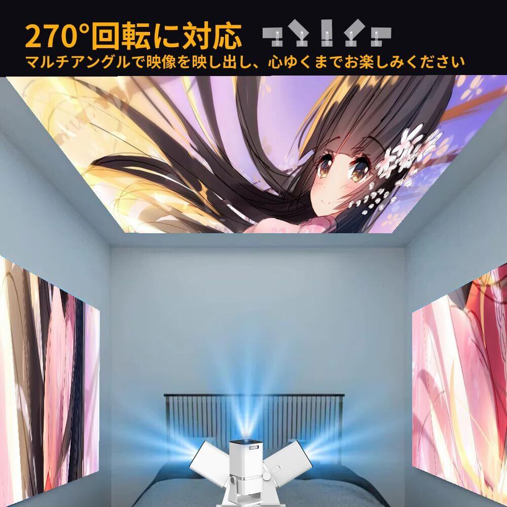 【270°回転調整可能】プロジェクターにブラケットが付属しており、ブラケットはすでに本体に取り付けられているので、取り付けを考える必要がありません。 ブラケットは270°自動回転をサポートし、0-180°の範囲で壁に映像を投影でき、ソファー/ベッド/床に寝転がっても大画面映画やテレビを見ることができます。