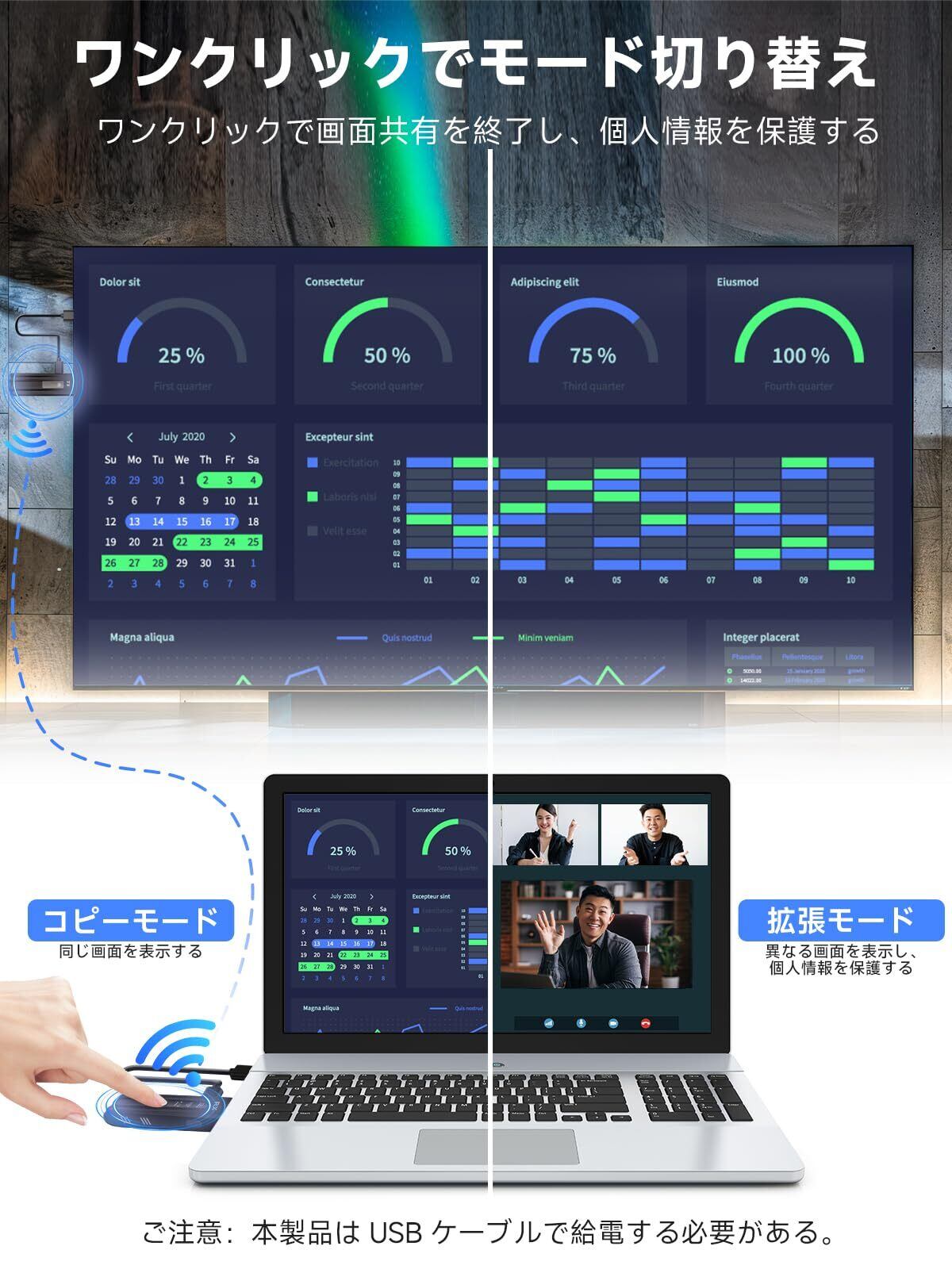 【プラグ&プレイ、2つのモード】MomanワイヤレスHDMI送信機と受信機は、内蔵アンテナを備えた設計で、迅速なスクリーンキャストが可能です。このHDMI送信機と受信機はWi-FiやBluetoothを必要とせず、アプリのダウンロードも不要です。HDMIワイヤレスは画面コピーと画面拡張をサポートし、コピーモードでは画面をリアルタイムで同期可能、拡張モードでは異なる画面を表示できます。これにより、より幅広い操作が可能になります。