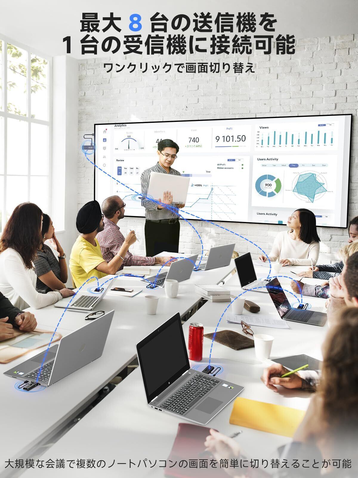 【コンパクトなデザインと幅広い広い互換性】ワイヤレスHDMIエクステンダーはコンパクトで軽量のため、ポケットに入れて持ち運ぶことができます。さまざまなディスプレイモードを自動認識して構成可能です。受信機はテレビ、モニター、プロジェクターなどの大画面デバイスと互換性があり、送信機はコンピューター、DVカムコーダー、ビデオカメラ、PS4/5、セットトップボックスなどに接続可能です。HDMIワイヤレスは、ビジネス会議、大規模な講演会、教育、ホームシアター、屋外シアターなどに適しています。(ご注意:HDMI伝送機能を実現するにはType-Cケーブルが必要です。お使いの電話/タブレットが映像出力機能をサポートしていることを確認してください。)