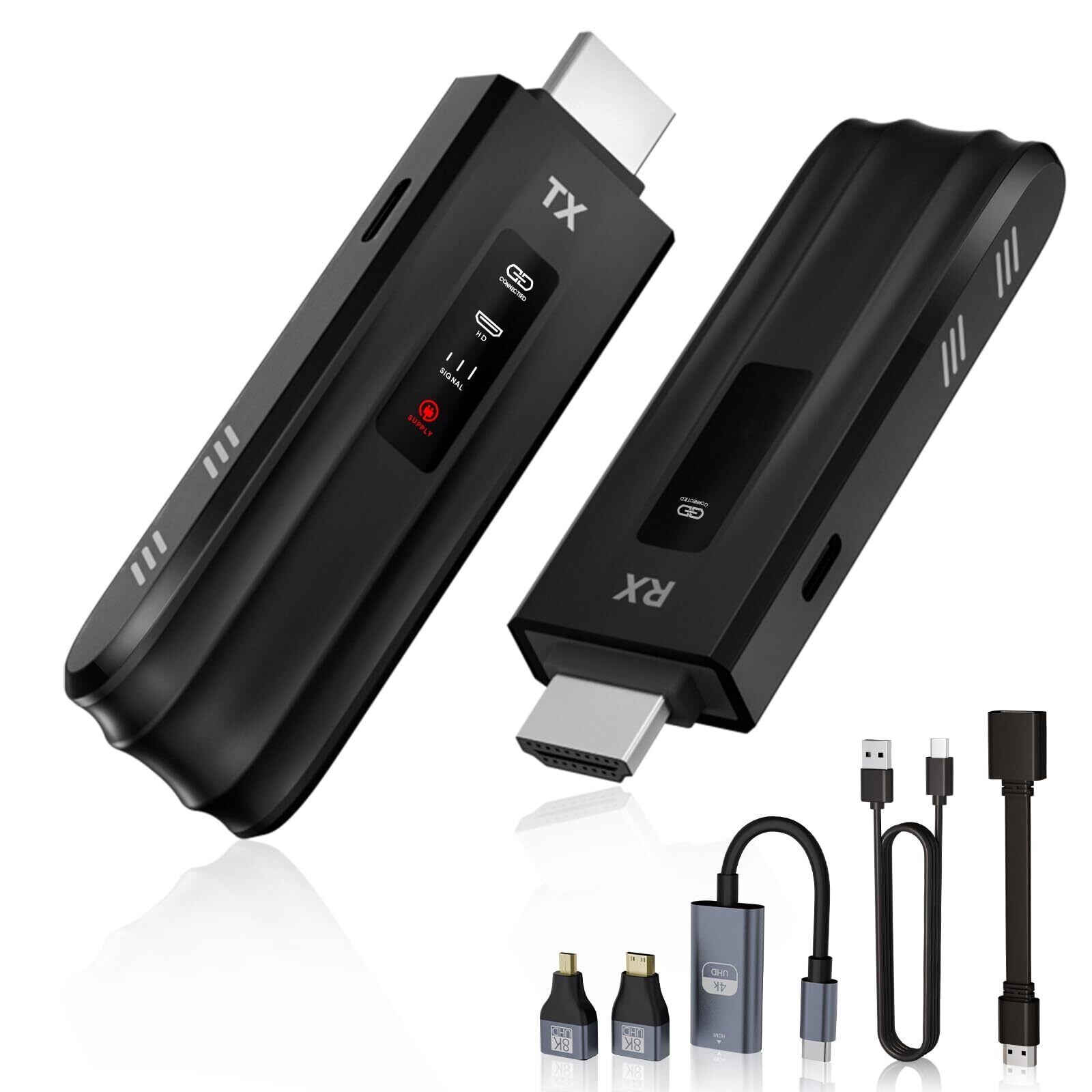 Moman HDMI ワイヤレス トランスミッター レシーバー ワイヤレス HDMI 送受信機セット, LED スクリーン付き HDMI 無線 50m安定伝送距離 収納に便利 小型 映像音声同期出力 テレビボックス/PC/ラップトップなど対応 LNK2, 無線-ワイヤレス-拡張-エクステンダー