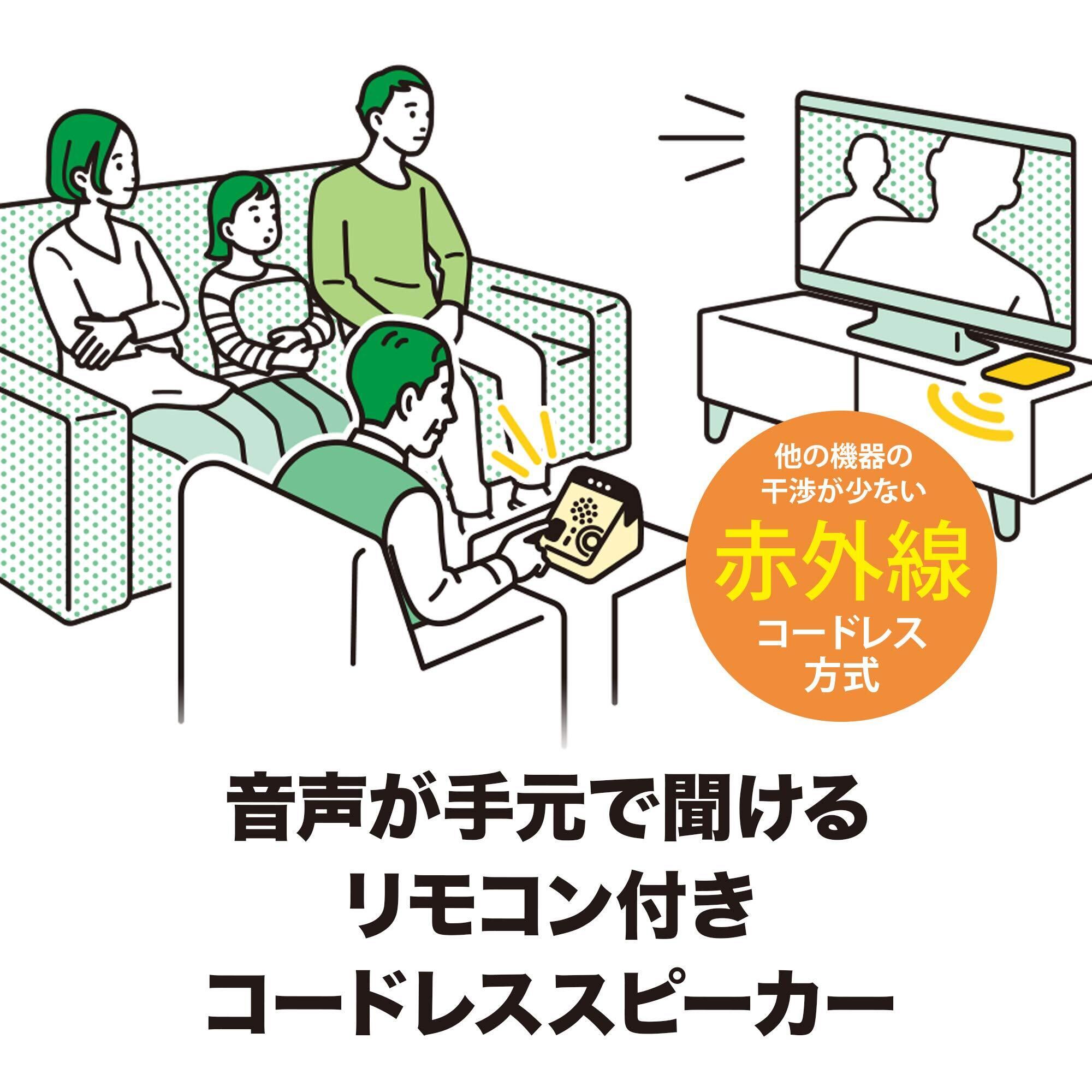 【 ワイヤレス 】他の機器との干渉や音声遅延の少ない赤外線方式を採用し、最大約7mのリスニングエリアでテレビの音声をお楽しみいただけます。