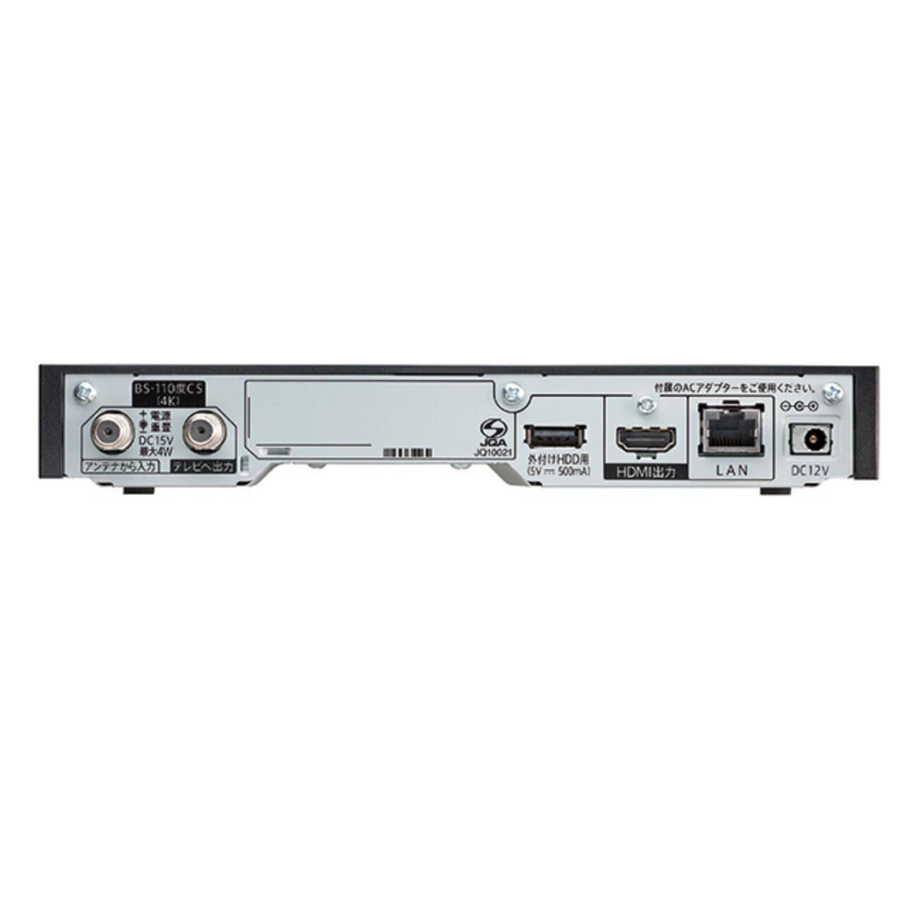 ■放送種類 新4K8K衛星放送(ISDB-S3)※4Kのみ対応(2K、8Kは非対応) ■CAS方式:ACAS(内蔵) ■搭載チューナー:高度BS/110度CS×1 ■アンテナ入出力端子:入力×1、出力×1(入力:コンバータ供給電源15V、最大4W) ■HDMI出力端子:1(2Kダウンコンバート出力対応) ■LAN端子:1(10BASE-T/100BASE-TX) ■USB端子:1(ファームウェア更新用USBメモリーおよび録画用USB HDD接続用) ■電源:AC100V(ACアダプター方式