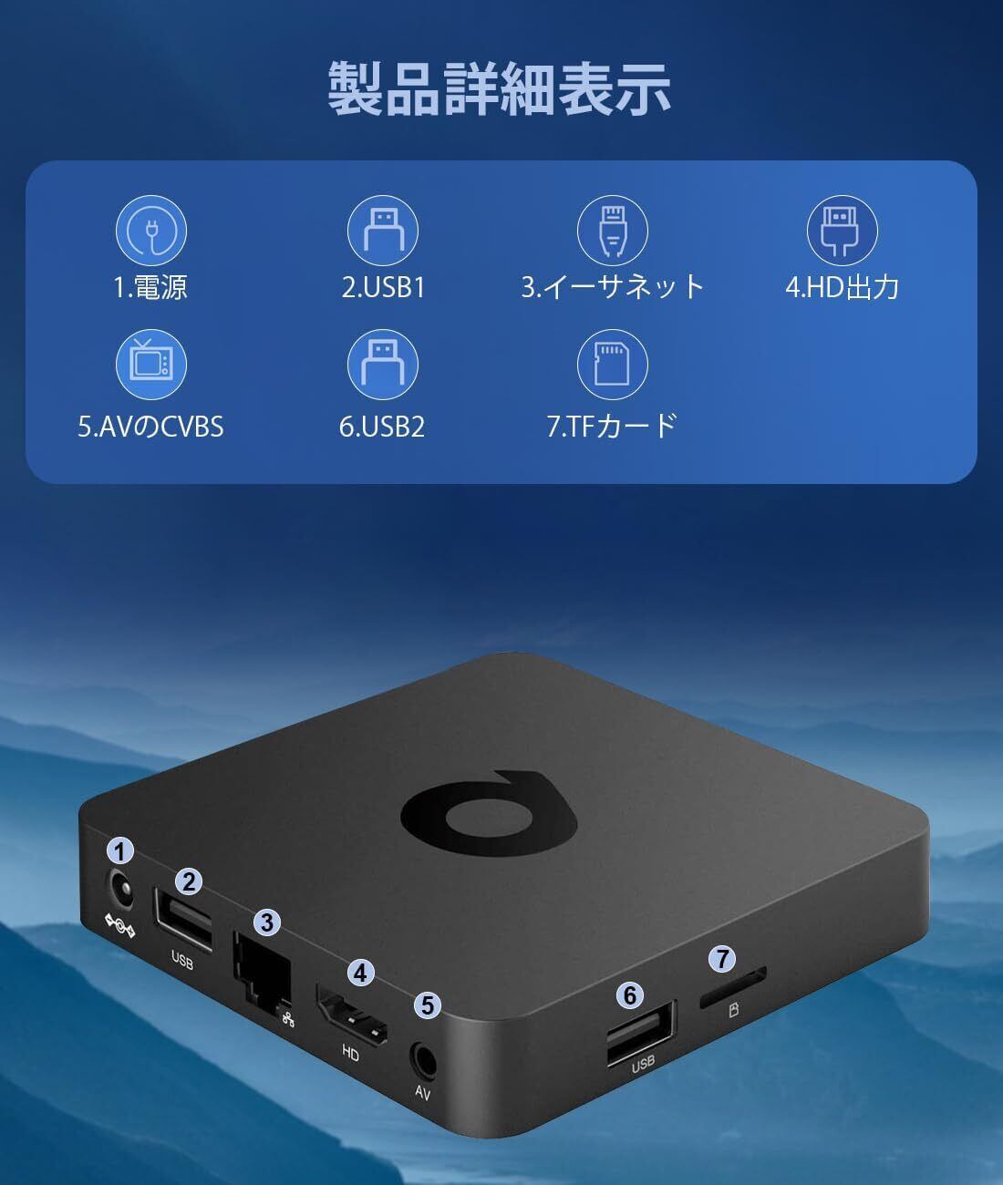 【使用】製品サイズ 製品サイズ 100*100*18mm、色黒、カードリーダー SD/SDHC/MMC カード。 セット内容: セットトップボックス + 電源 + HDMI ケーブル + リモコン + マニュアル