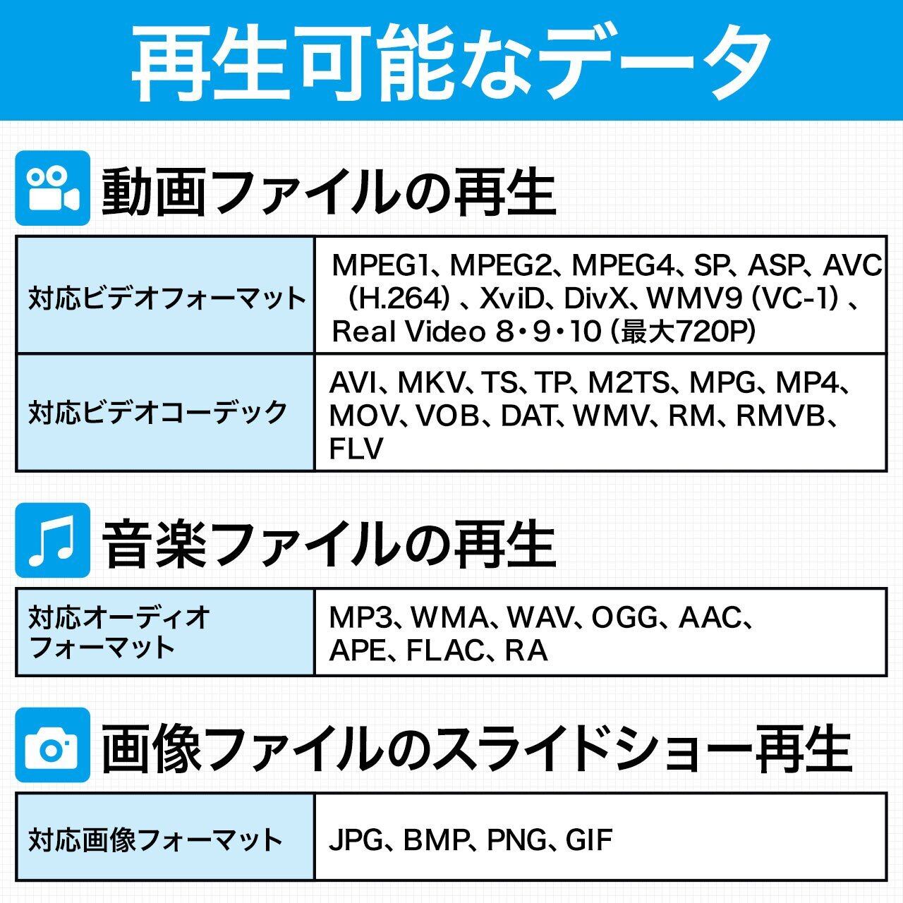 デジカメで撮影した写真や映像、パソコンで作成した動画などを、テレビやプロジェクターで再生できるメディアプレーヤーです。