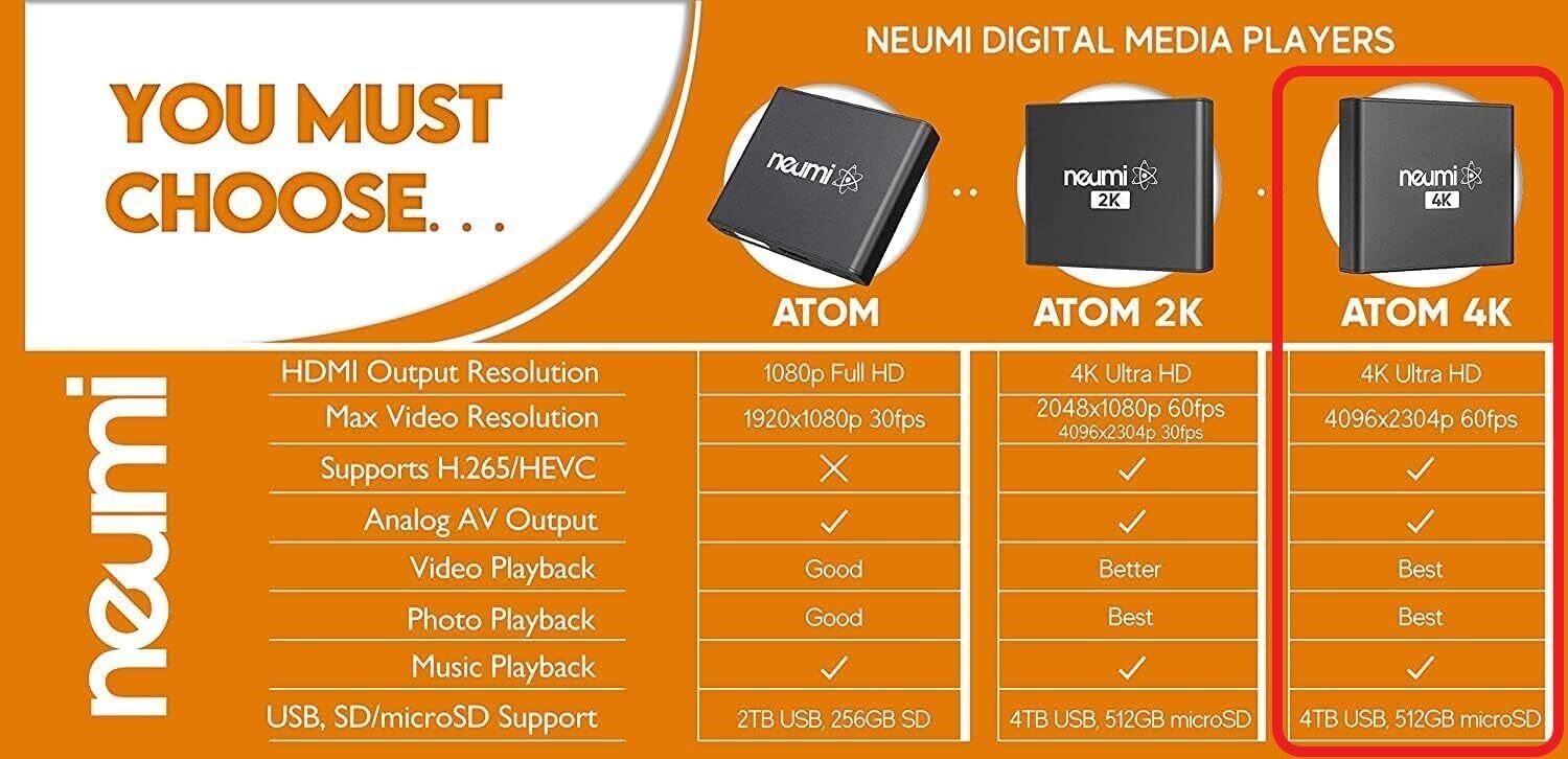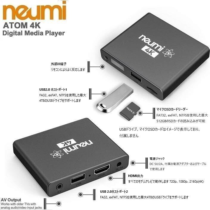 NEUMI Atom 4K V2デジタルメディアプレーヤーNEUMITECH(日本語取扱説明書&付&単四電池×2&IRケーブルセット品)USBとmicroSD用 写真・音楽・動画再生プレーヤー レジューム機能付