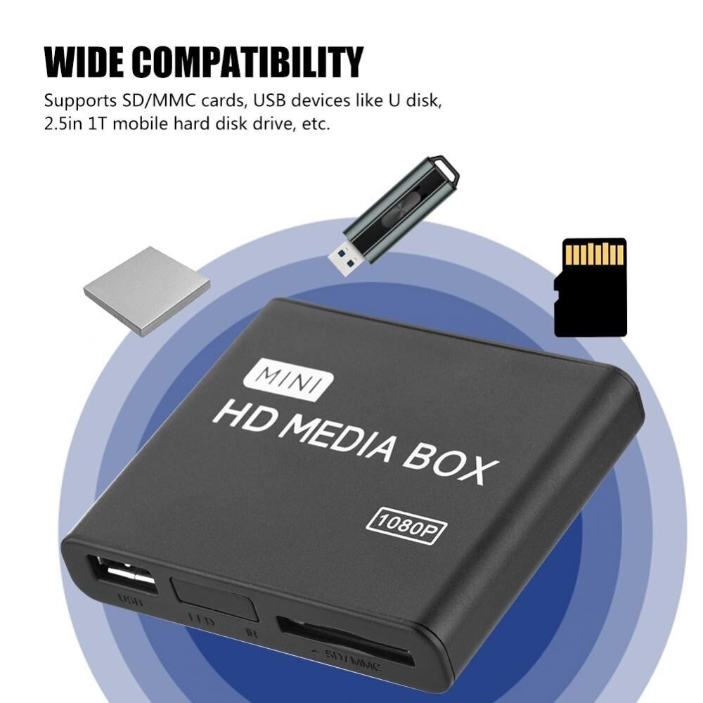Richer-R ステレオメディアプレーヤーセンター 1080P AV/YPrPb/HDMI出力HDMIメディアプレーヤー SDカードやUSBデバイス 100Mbps幅広い互換性(us)