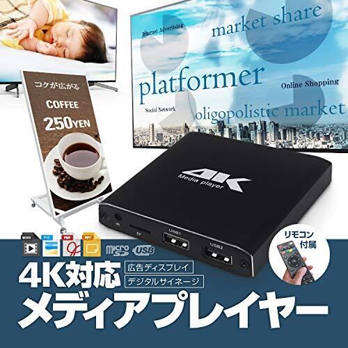origin 4Kメディアプレイヤー サイネージ デジタル広告 電子看板 リモコン付属 Blu-Ray形式対応 MicroSD USBメモリ・HDD コンパクト MP4K029