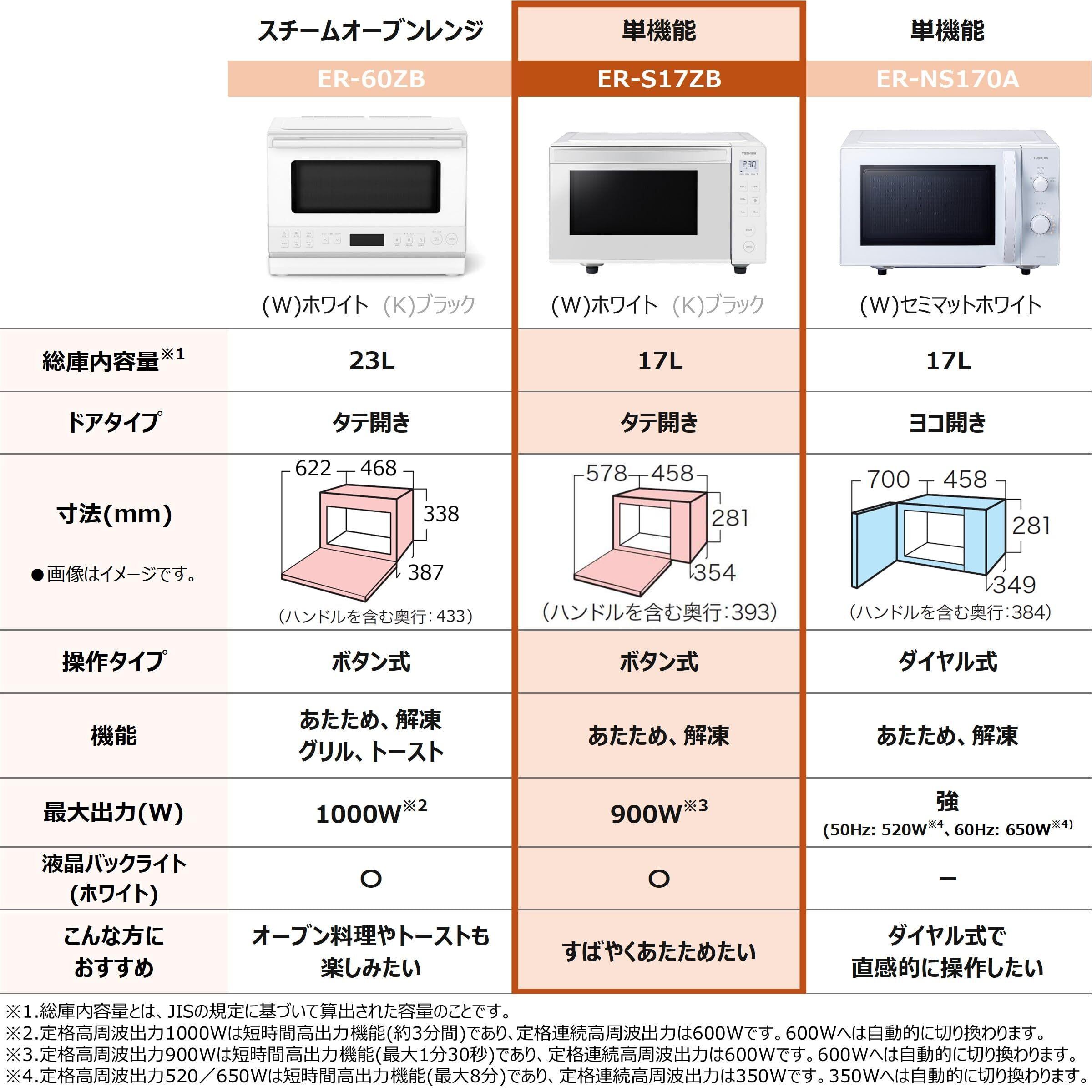 TOSHIBA(東芝) 電子レンジ 17L 縦開き 単機能 フラットテーブル レンジ バックライト液晶 一人暮らし お弁当 解凍/あたため 900W時短あたため シンプルボタン 簡単操作 ER-S17ZB (W) ホワイト 新社会人 新生活 ヘルツフリー