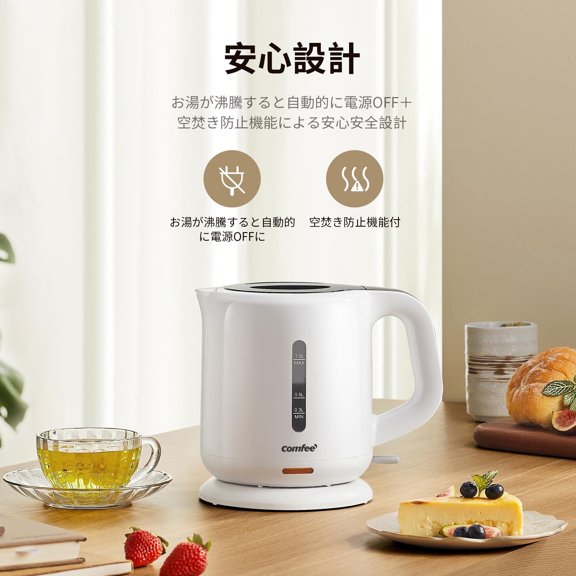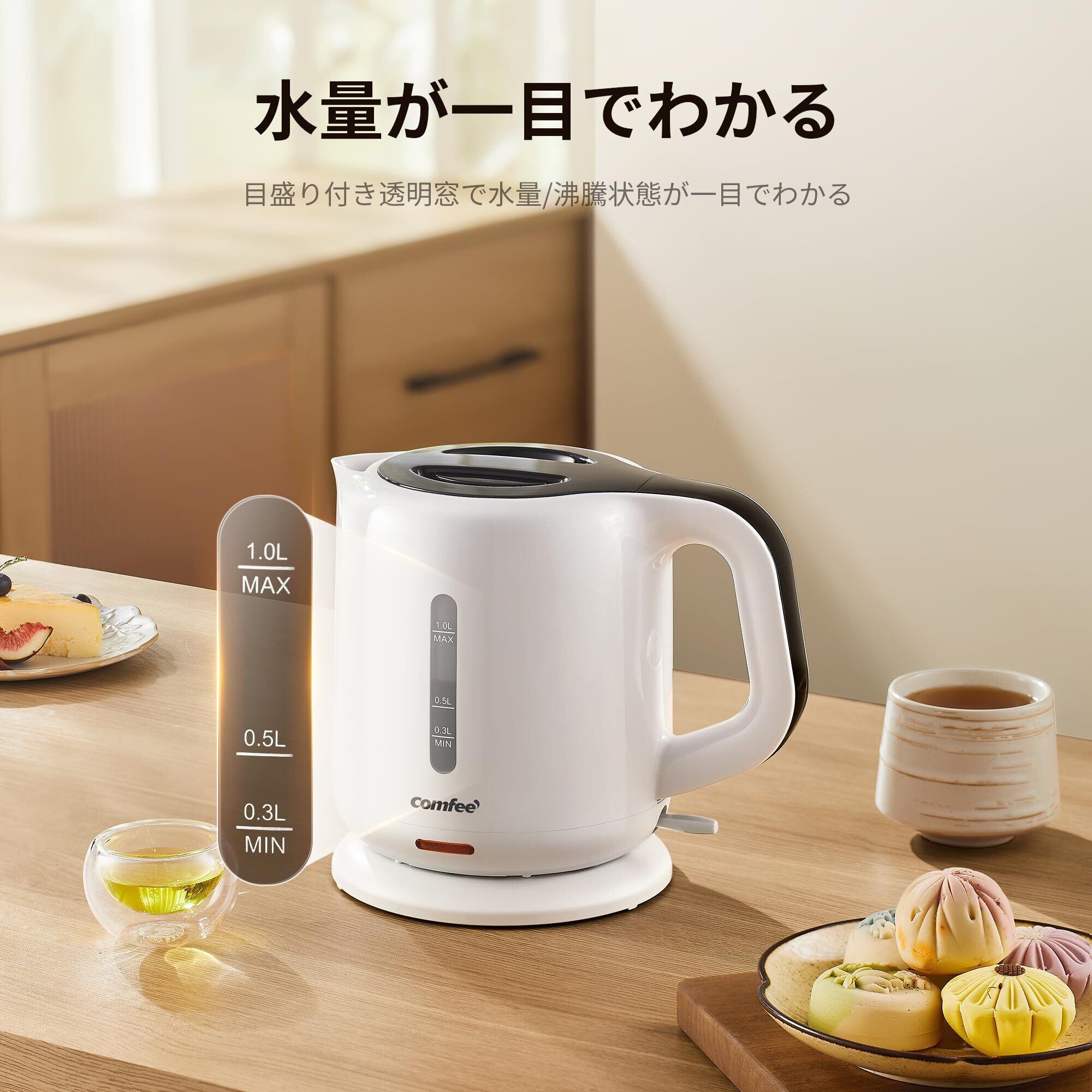 COMFEE' 電気ケトル 1.0L 急速沸騰 空焚き防止 沸騰自動OFF機能付き お手入れ簡単 コンパクト シンプル 一人暮らし ホワイト MK-08D03A