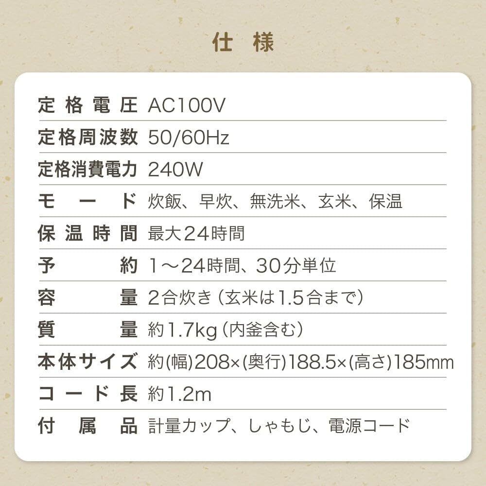 デザインも機能もシンプルに使いやすく ・食べきれる2.0合炊き ・シンプルな機能設計 ・インテリアに馴染むデザイン ・お手入れ簡単