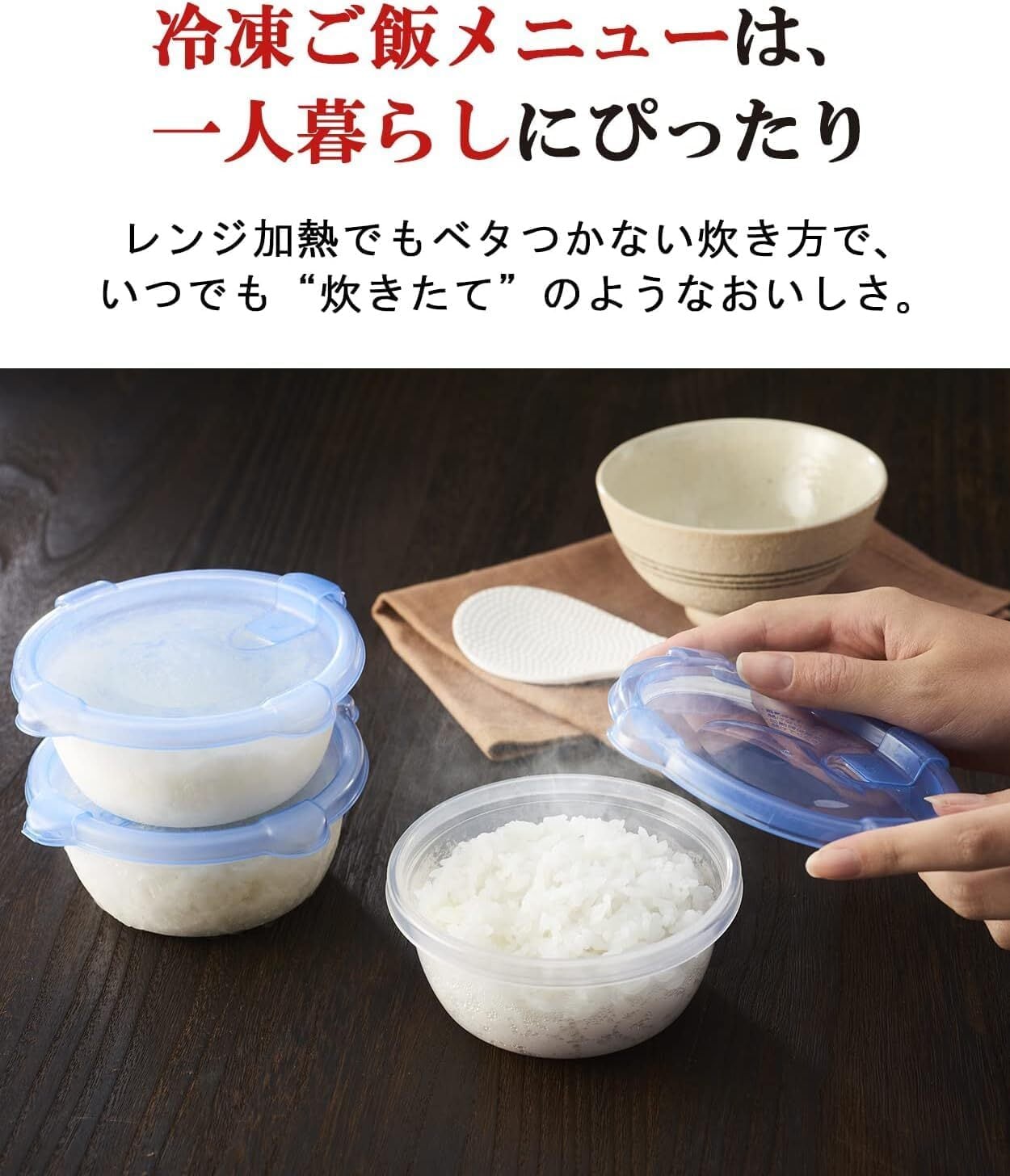 【便利な炊飯機能】エコ炊き:白米メニュー炊飯時に比べて約23%電力ダウン!/早炊き:お茶碗1杯分(0.5合)を約24分で炊きあげ/冷凍ご飯:レンジ加熱でも“炊きたて”のようなおいしさ
